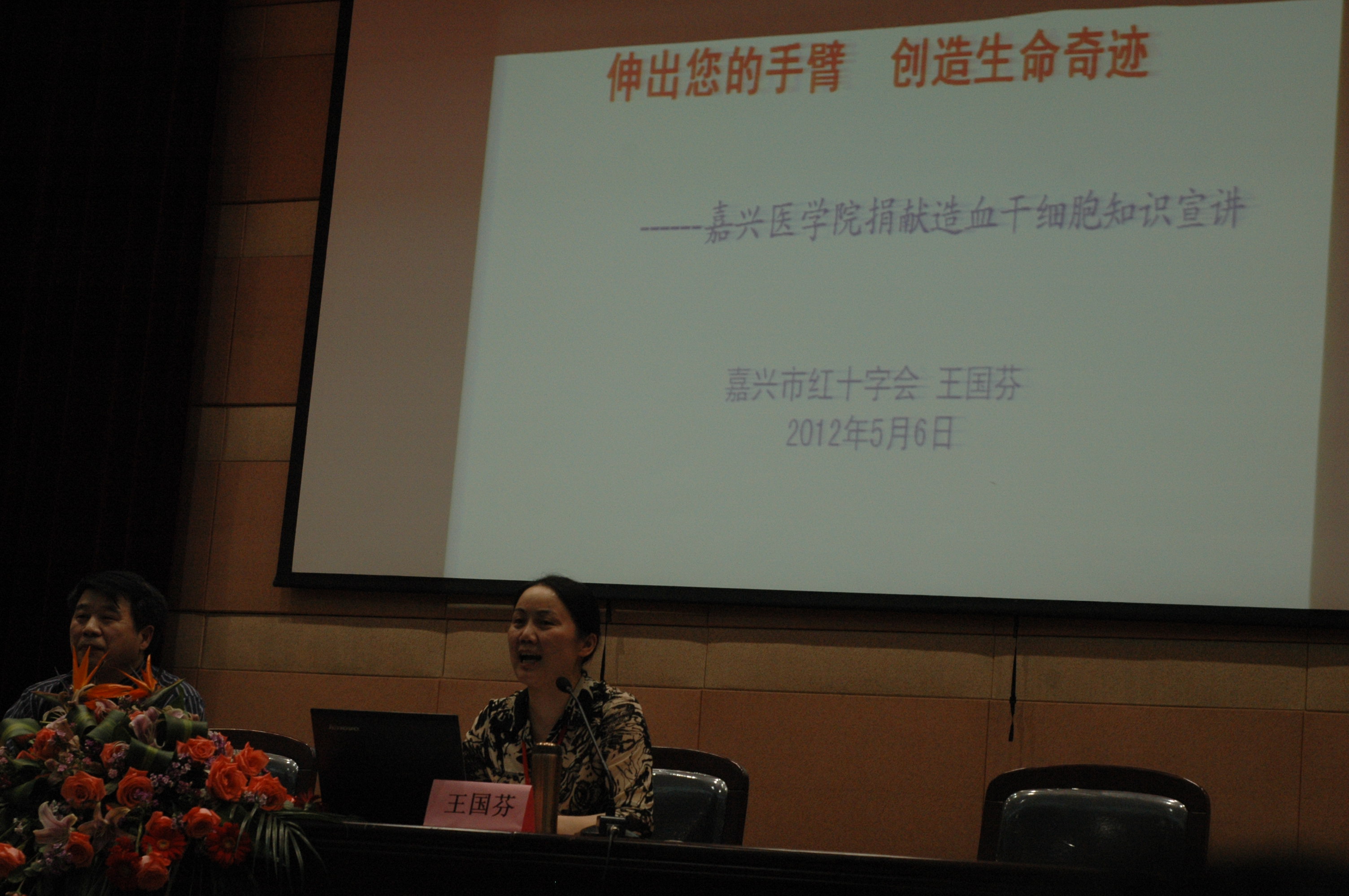 在TCL国际会议报告厅举办“造血干细胞捐献”宣讲会,嘉兴市红十字会副会长王国芬主讲,现场四百余名学生聆听报告。宣讲会由ACG港湾