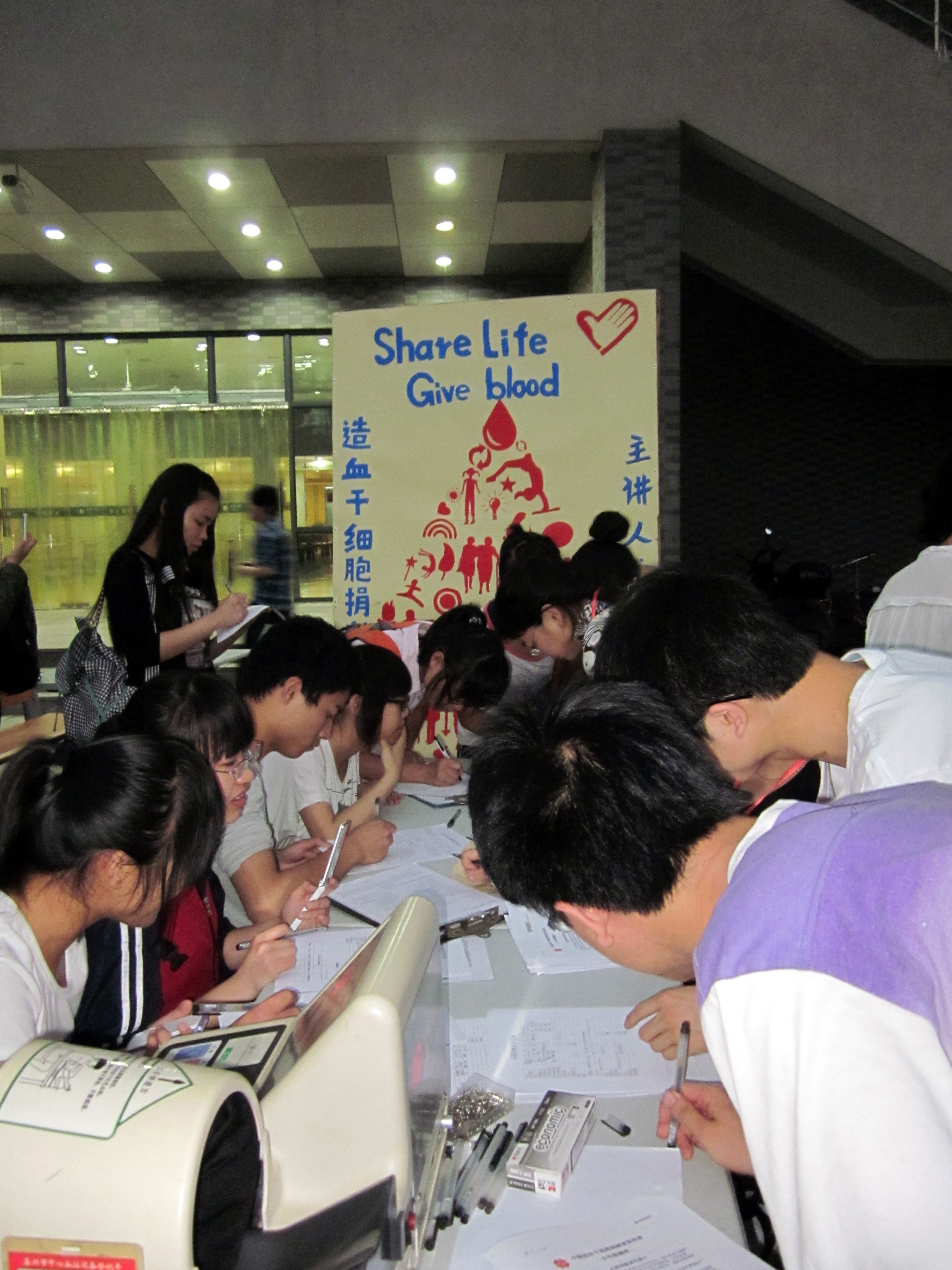 青协积极做好宣传配合工作,并发放《捐献造血干细胞倡议书》,让更多的同学加入到志愿者的队伍中来。