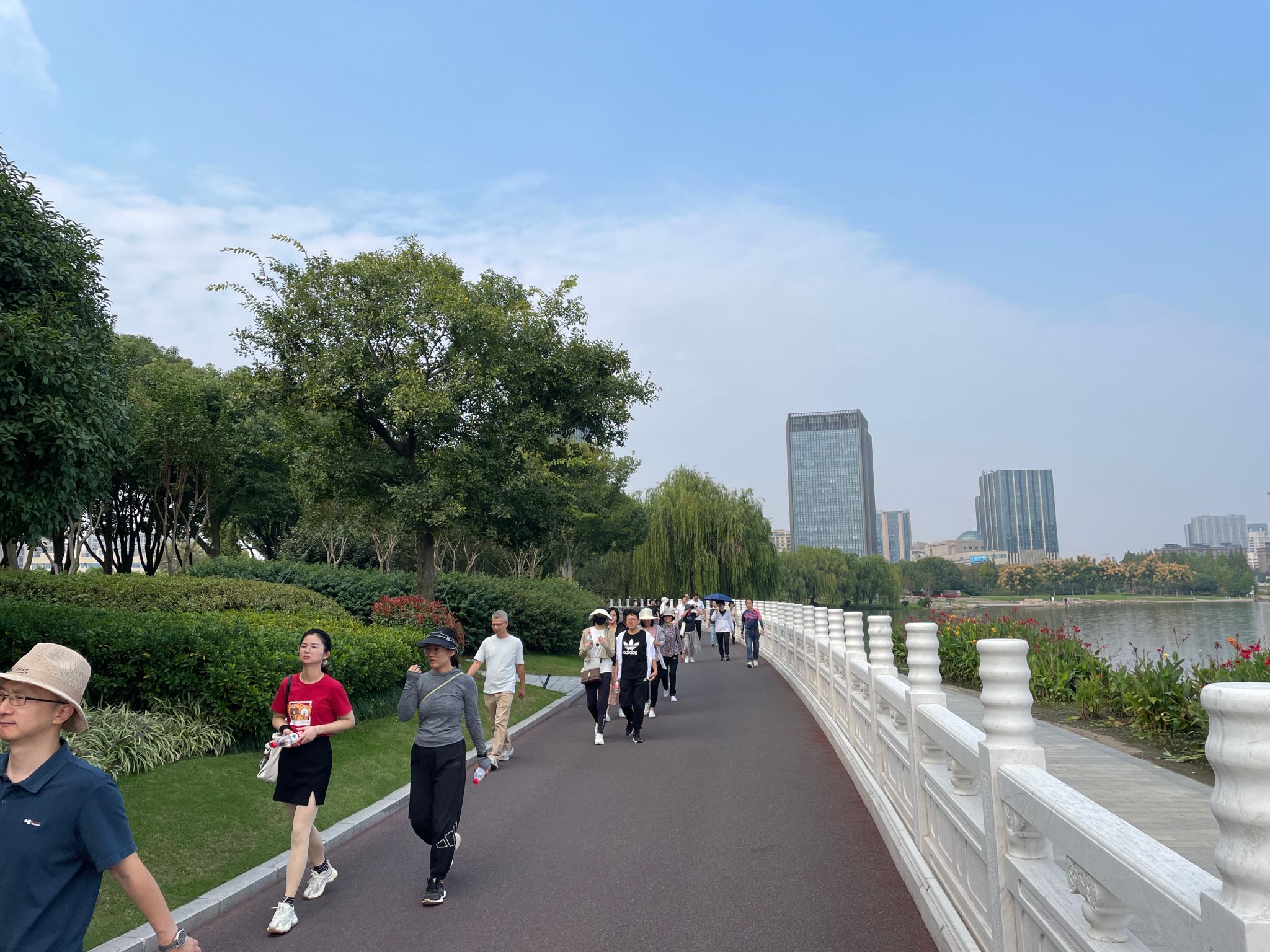 秋高气爽循绿道,波光潋滟赏秋风。本次健步走活动从梁林校区东门出发,途径展望路花海至姚家荡公园,全程九公里。大家兴致高昂、精神抖擞、阔步前行,丈量城市生态绿道,享受沿途美好自然风光,目光所及之处皆是浓郁的秋色。老师们边走边谈,交流工作生活,享受健步走带来的快乐,在健康、轻松、愉悦的氛围中完成了本次健步走活动,展现了ACG港湾 全体教职工积极向上的精神面貌。