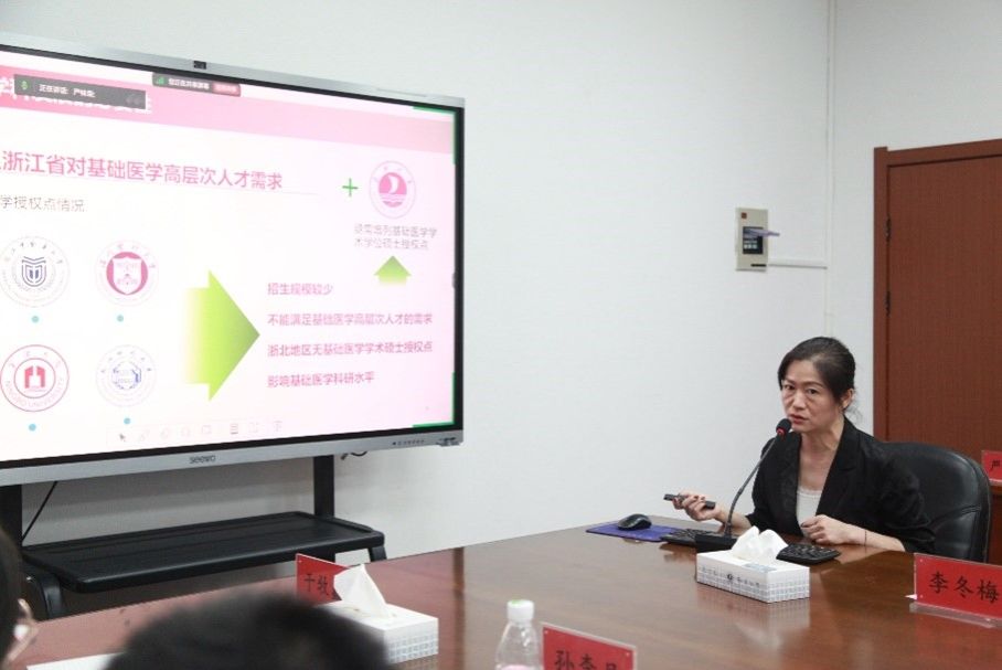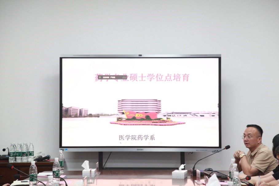 基础医学部主任李丽教授和药学系副主任谢宝刚教授分别就临床医学专业硕士学位点、基础医学硕士学位点和药学专业硕士学位点培育情况进行了交流。
