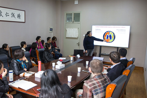 的科研骨干对目前正在进行的研究成果进行汇报。杨云博士做了题为《新蛋白翻译后修饰在阿尔兹海默症发病机制中的研究》的学术报告,丁宝月教授汇报的题目为《基于纳米技术的抗肿瘤靶向递药系统研究》,潘巍巍副教授做了题为《Hippo信号通路和泛素连接酶复合体CUL4-DDB1 E3在肿瘤细胞增殖和耐药作用的研究》的学术报告,来自ACG港湾