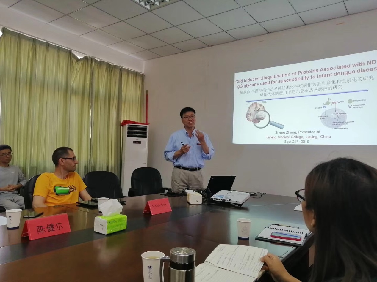 院长陈健尔教授四位专家教授于9月24日(星期二)上午在梁林校区 1号楼 330会议室做了四场精彩的学术报告,题目分别为《Glucose metabolism as a therapeutic target in neurodegenerative diseases》、《Cerebral Ischemia/reperfusion Injury Induces Aggregation and Ubiquitination of Proteins Associated with Neurodegenerative Diseases》、《Bringing traditional Chinese medicine to practice through research and entrepreneurialship》和《康复医学研究进展》。