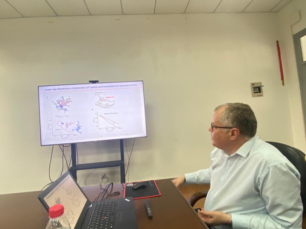 下午,阿列克谢院士作了题为星形胶质细胞的钙活性的学术报告,从脑科学的发展简史介绍到在脑科学领域越来越受到关注的星形胶质细胞的功能,并着重介绍了实验室如何利用先进的双光子成像技术记录和分析活体动物在运动等不同状态下星形胶质细胞钙活性的变化。
