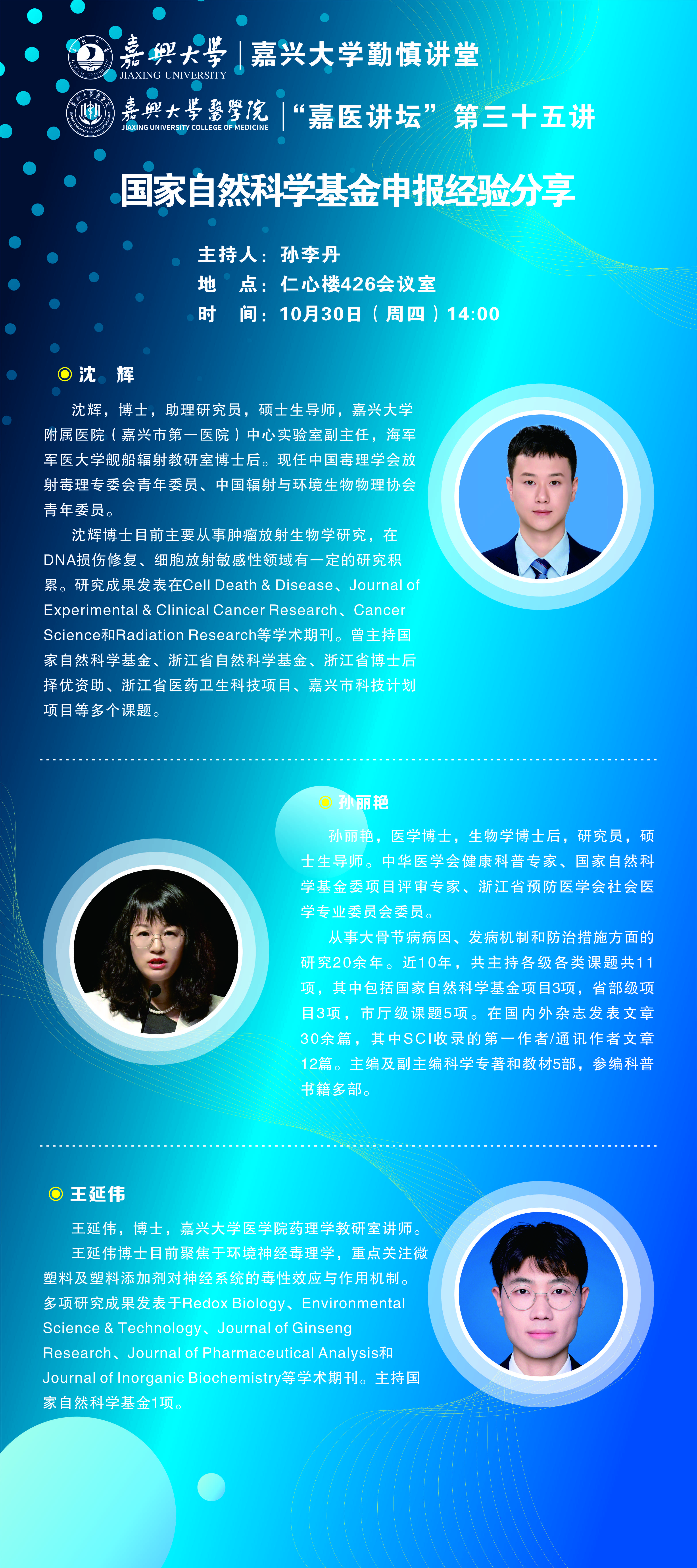 嘉医讲坛第三十五讲-沈辉副主任、孙丽艳教授、王延伟博士