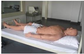 ECS综合模拟人是由美国METI公司生产、具有生理驱动功能的高科技模拟真实教学的产品,具有完备的功能,包括高级生命支持系统、心血管系统、呼吸系统、药理系统、药代谢系统、深静脉系统、男女性泌尿生殖系统、实时病人监测、创伤功能。它包括模拟人、PCU控制箱、笔记本工作站、监护仪、气瓶五个部分。一、头部:1、能单眼或双眼眨动,眼球可以模拟缩小、正常、扩大三种状态;2、鼻腔有气体呼出;3、门牙为可插取式;4、舌头可以模拟正常、半水肿、全水肿三种状态;5、两眼、两耳、右嘴角可模拟液体流出;6、颈部可作环甲膜穿刺;7、可作颈静脉给药;二、胸部:1、可作5导联心电图、除颤、体外起搏、心包穿刺、气胸穿刺、液胸引流(有模拟液体流出);2、可听诊正常心音、呼吸音和各种异常的心音、呼吸音;三、腹部:1、可作腹腔灌洗;2、可作股静脉给药;3、可作导尿,有模拟尿液流出;四、手臂:1、左手臂可进行血压测量;2、右手臂为穿刺手臂,可进行各项穿刺操作。