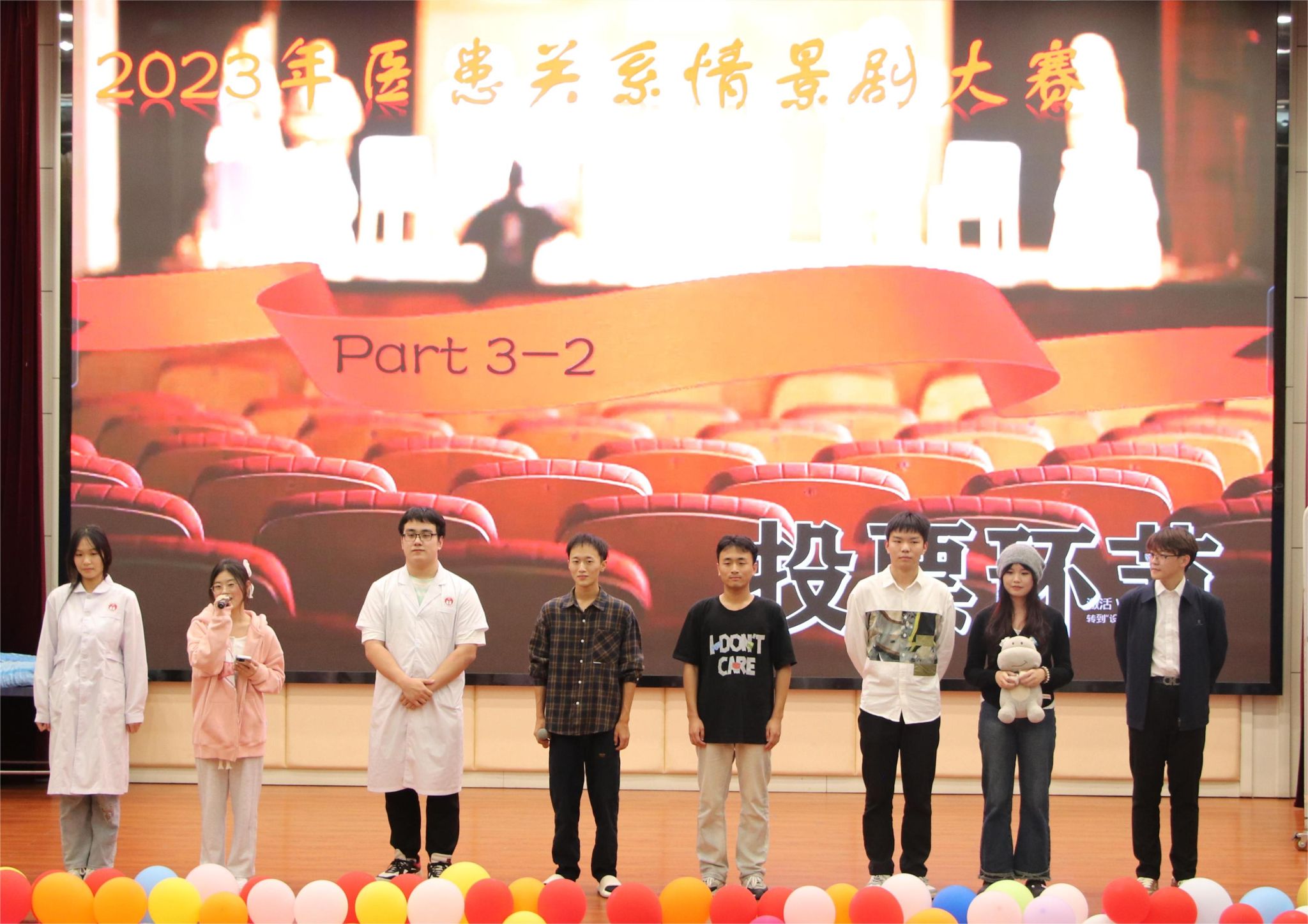 比赛还设置了观众互动问答、抽锦鲤、歌曲献唱等环节,观众为演员们的精彩表演鼓掌喝彩,现场一片欢声笑语。经过激烈角逐,最终由医本227班摘得一等奖及“最佳人气奖”,医本221、医本226荣获二等奖,护本222、护理中本221、药学221荣获三等奖。本次大赛通过生动形象的情景剧表演,寓教于乐,既丰富了同学们的业余生活,也启发了同学们对于和谐医患关系的思考,培养了同学们的共情能力和人文关怀。