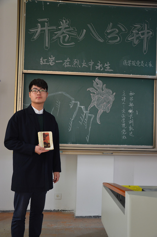 本次开课的主讲人是文法学院秘书部部长胡凯达同学,他为我们带来的演讲主题是“红岩——在烈火中永生”