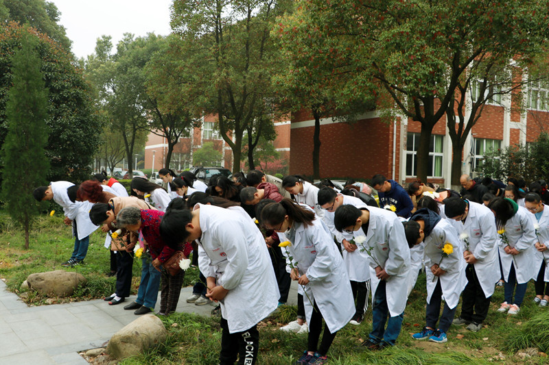活动现场,全体人员向捐献者们行三鞠躬,学生代表深情宣读了遗体捐献倡议书,宣扬了“精神与日月同辉,爱心与天地共存”的遗体捐献精神。继而,全体人员怀以感恩之心、恭敬之情向捐献者献上鲜花并瞻仰纪念碑。
