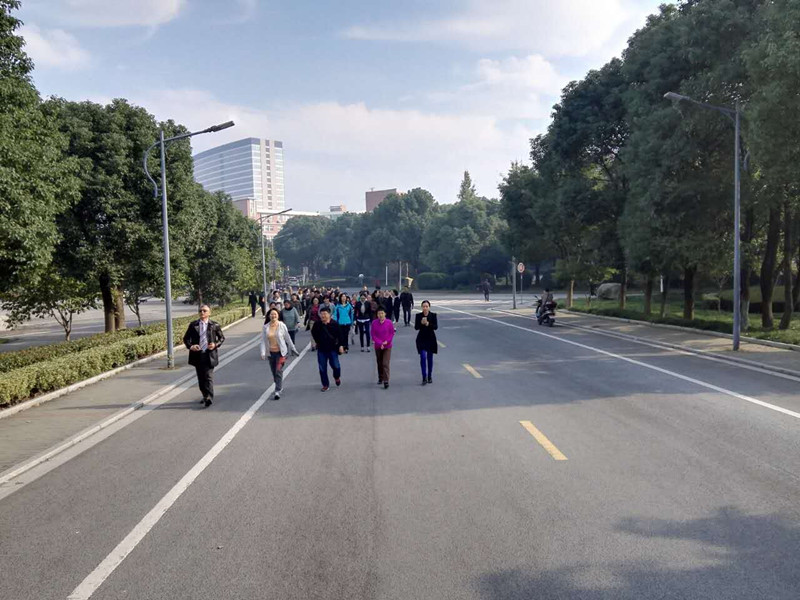早上不到九点半,我院的教职工们就早早的来到ACG港湾 实验中心门口准备“步调一致”健步走,9:30,大家开始围绕梁林校园进行健步走,健步过程中,大家三三两两走在一起,一边健步,一边聊天,既锻炼了身体,又增进了彼此同事间的交流。
