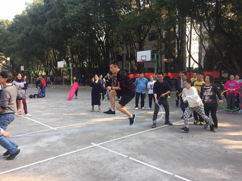 下午13:30,我院的教职工们开始在越秀校区进行了各项比赛。首先是“同心协力”跳长绳,瞧,我院的教职工们一个个身手敏捷,有条不絮的进行着;紧接着是“环环相扣”套圈圈,这个游戏难度较大,但是大家依然努力的完成了任务,再次是“海底传月”递篮球,最后是“心手相连”接力赛。