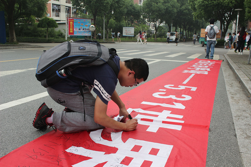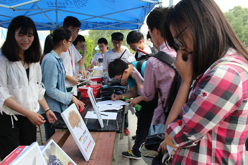 的特色,本次活动特意在梁林校区展示了吸烟者肺的标本,让同学们对吸烟造成的肺损伤有一个直观的认识。同时,在越秀校区进行了志愿者的倡议活动,数十个身着红色志愿者服的志愿者站成“NO”型,鲜红的颜色昭示着对吸烟的抵制,响亮的口号传递着禁烟的决心。志愿者用行动在实践“无烟世界,让肺自由呼吸”的口号。此外,本次活动并不拘泥于以往的发宣传资料上,成员们在宣传的载体上独具匠心,将宣传漫画制成拼图,同学们一步一步拼出完整的图案的过程,就是宣传一步一步深入人心的积淀。