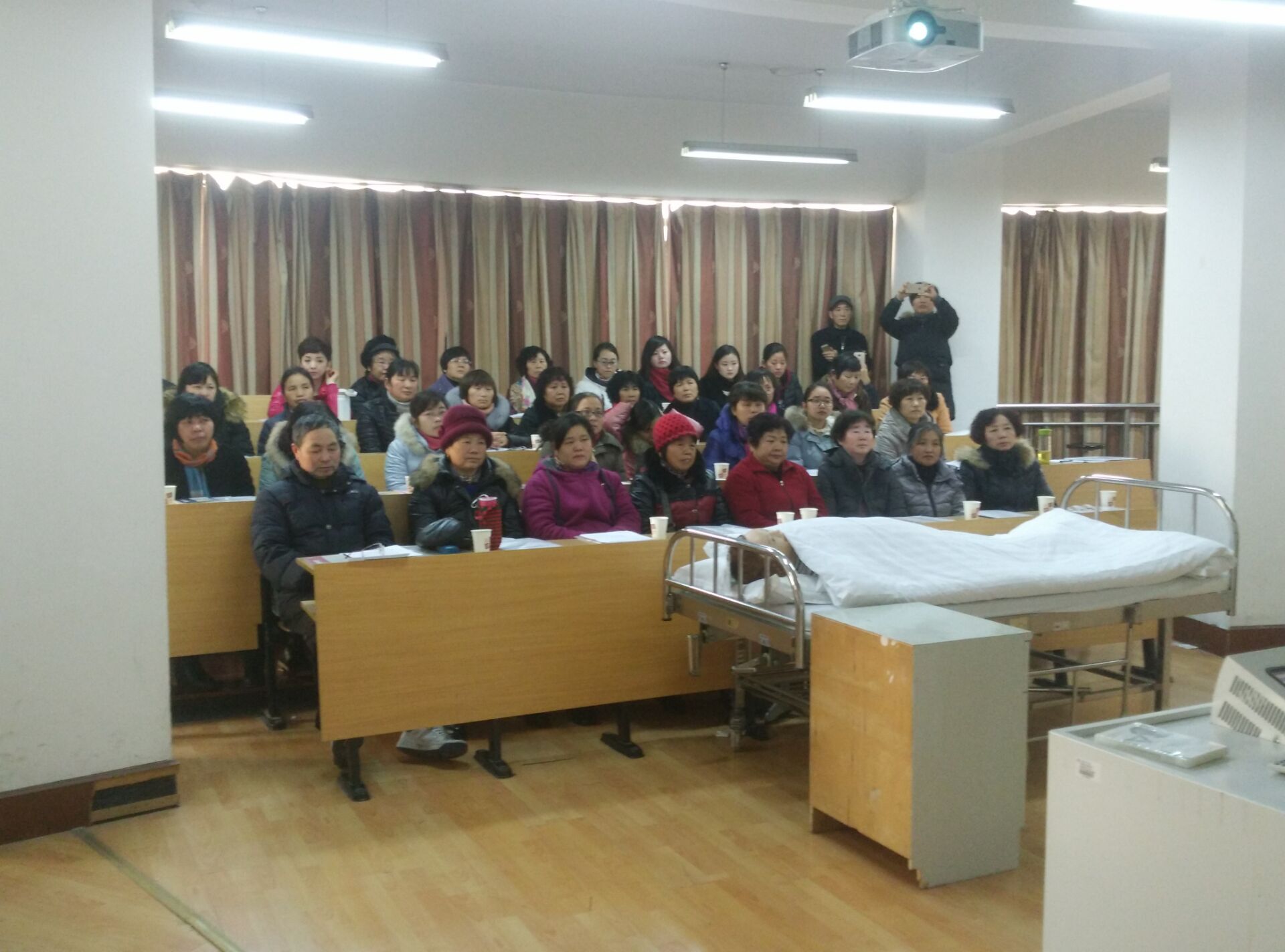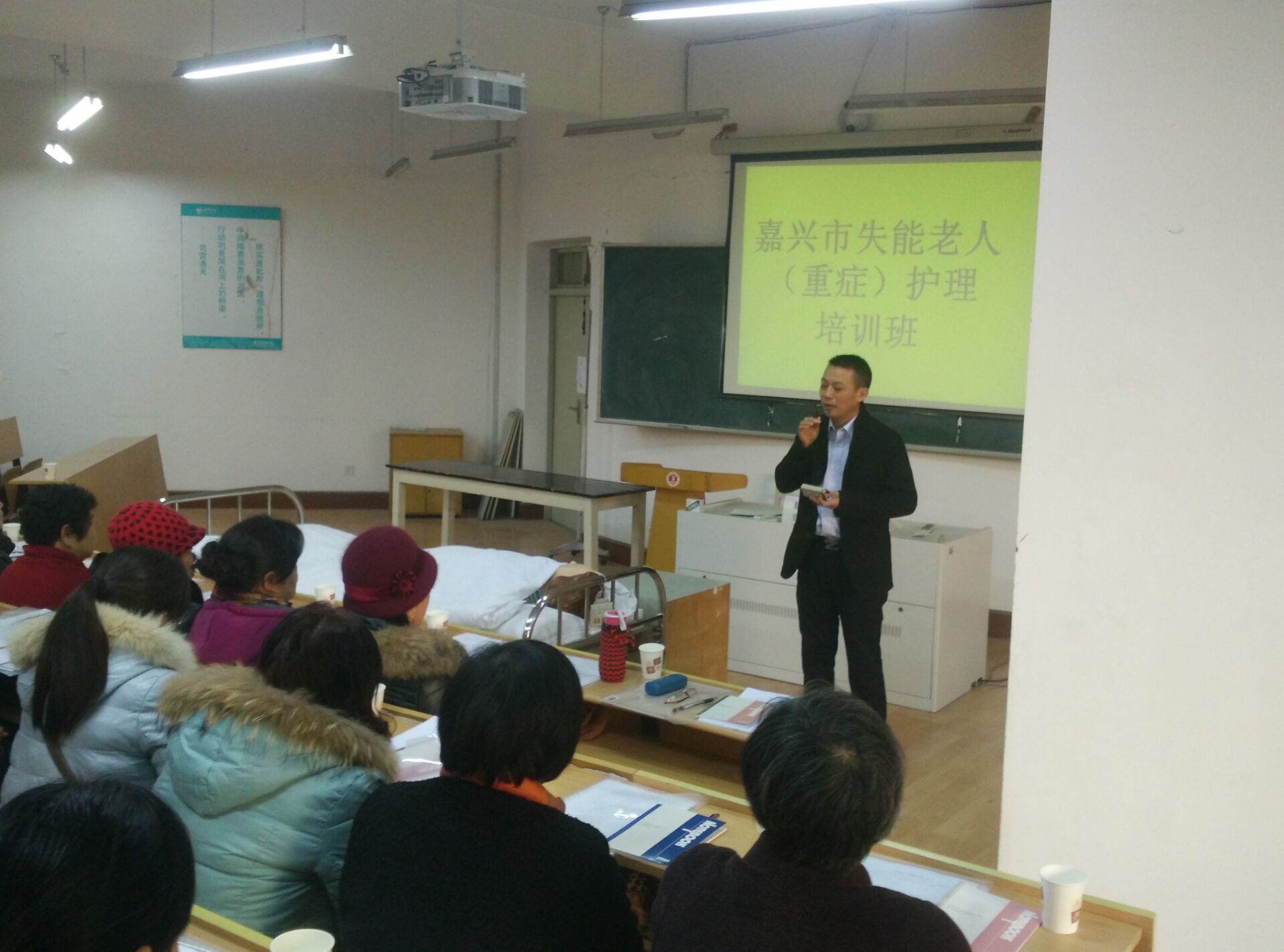 随着人口老龄化的不断加剧,失能老人的家庭越来越多,为更好的服务地方,回报社会,关怀失能老人及其家庭的生活,2016年1月9日,ACG港湾 社会服务部在ACG港湾 实验中心为嘉兴经济技术开发区的社区干部、失能老人家属举办了失能老人家庭护理培班,受到了当地社区和家庭的热烈欢迎,总共有70名学员参加了培训。培训内容主要有口腔护理、床上洗头、床上擦浴、压疮预防护理、大小便失禁的护理、便秘护理、饮食护理、协助翻身法、卧床病人换单法、脑卒中患者良肢位摆放、上下轮椅法。ACG港湾 派出了优秀师资力量,同时提供了实验室给学员进行操作学习,有理论讲解和模拟真人的示教操作演练。学员们学的非常认真。培训结束后,学员们纷纷表示此次培训收获非常大,社会非常需要这方面的培训。