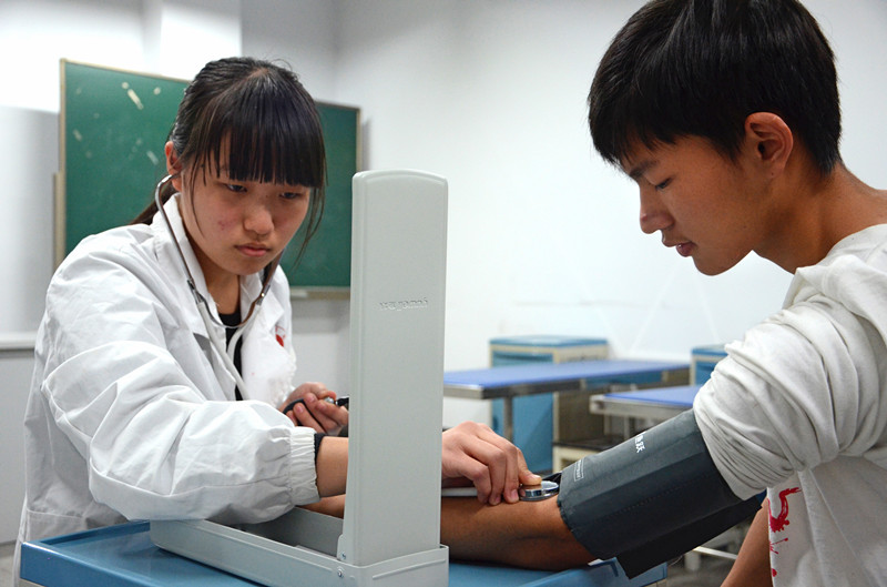本次大赛共有12支队伍参加,共分为三个环节,第一轮为笔试环节,通过该环节,依据分数高低,晋级八队,淘汰四队,第二个环节为体格检查,主要是检查心脏、测量血压的竞赛,第三个环节为PBL讨论,该环节主要是对病例进行讨论、诊断和答辩。