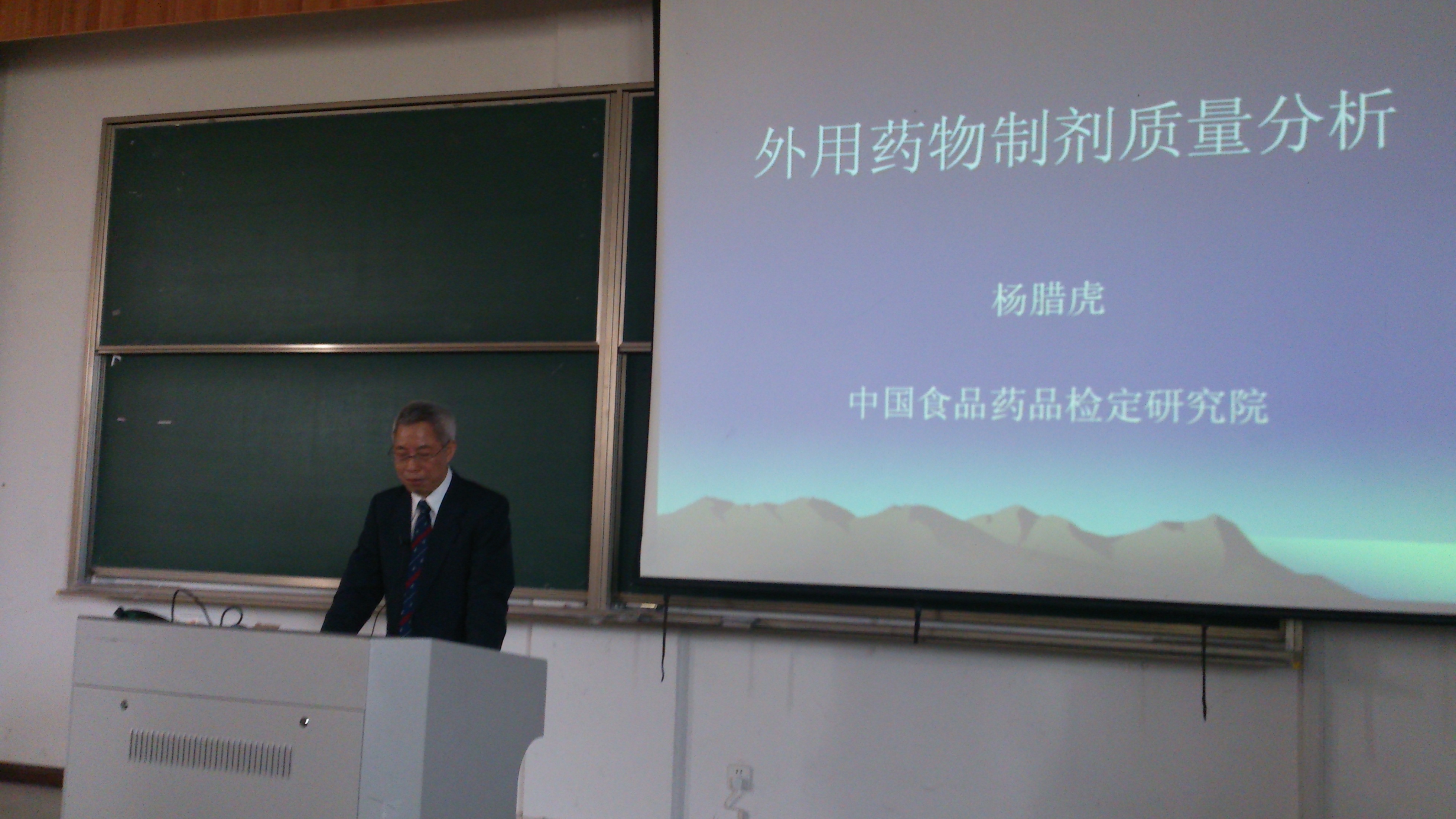 2014年3月17日在7号楼报告厅,药学系特邀中国食品药品检定研究院主任药师、复旦大学药学院、西北大学兼职教授杨腊虎主任,为药学专业学生举行了专题讲座。药学11级、12级全体学生、药学系全体教师和实验教师、及其它系部部分教师参加了本次活动。