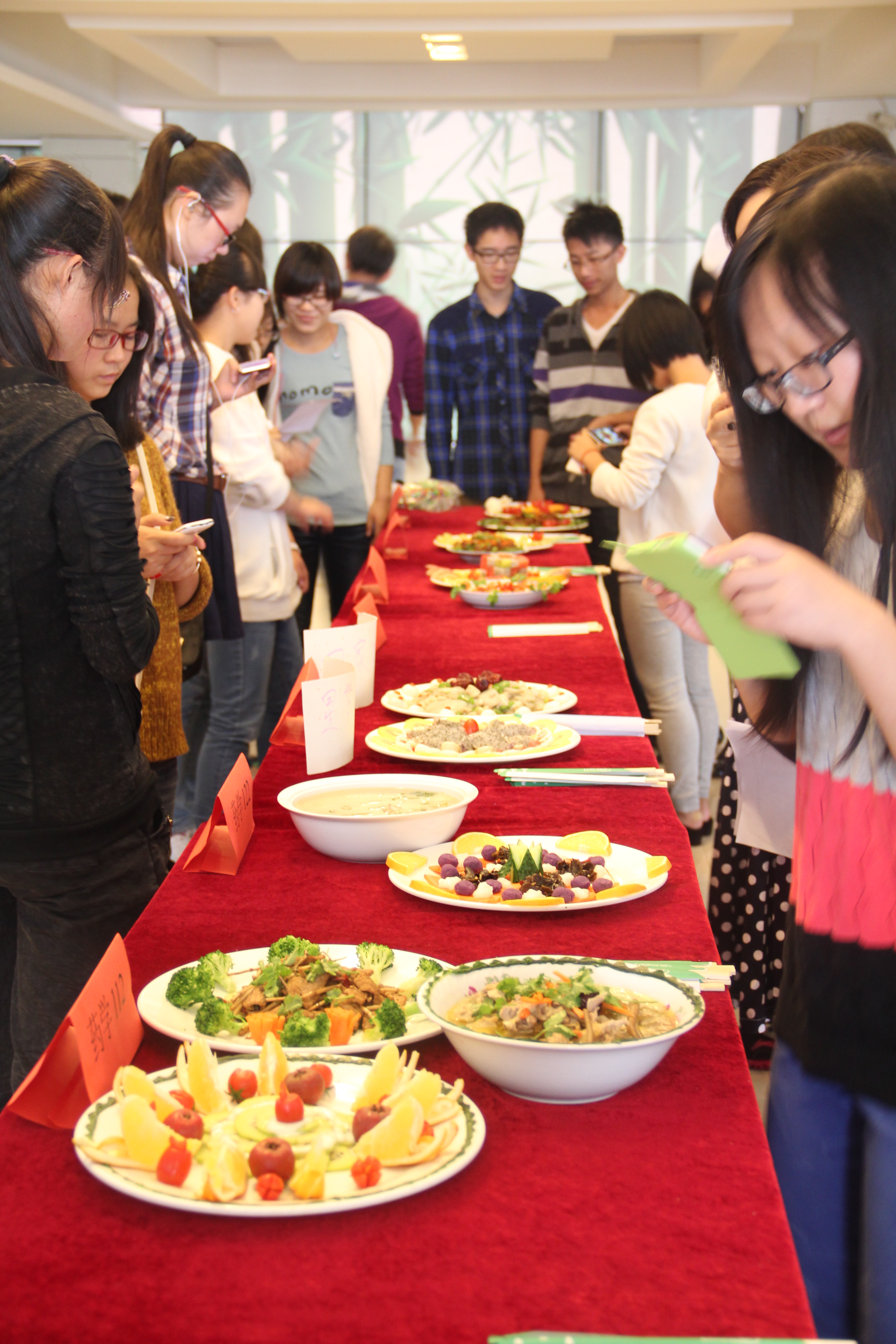于梁林校区新食堂二楼隆重举行首届药膳文化节暨药膳制作大赛。学院副院长黄嬛、药学系副主任黄越燕、学工办主任蒋小红、团总支书记赵丽萍、医学实验中心主任赵桂珠、生药学教研室主任黄雄及药学系教授傅应华均出席了本次活动,并担任药膳制作大赛的专业评审。此外,现场还有20位来自ACG港湾