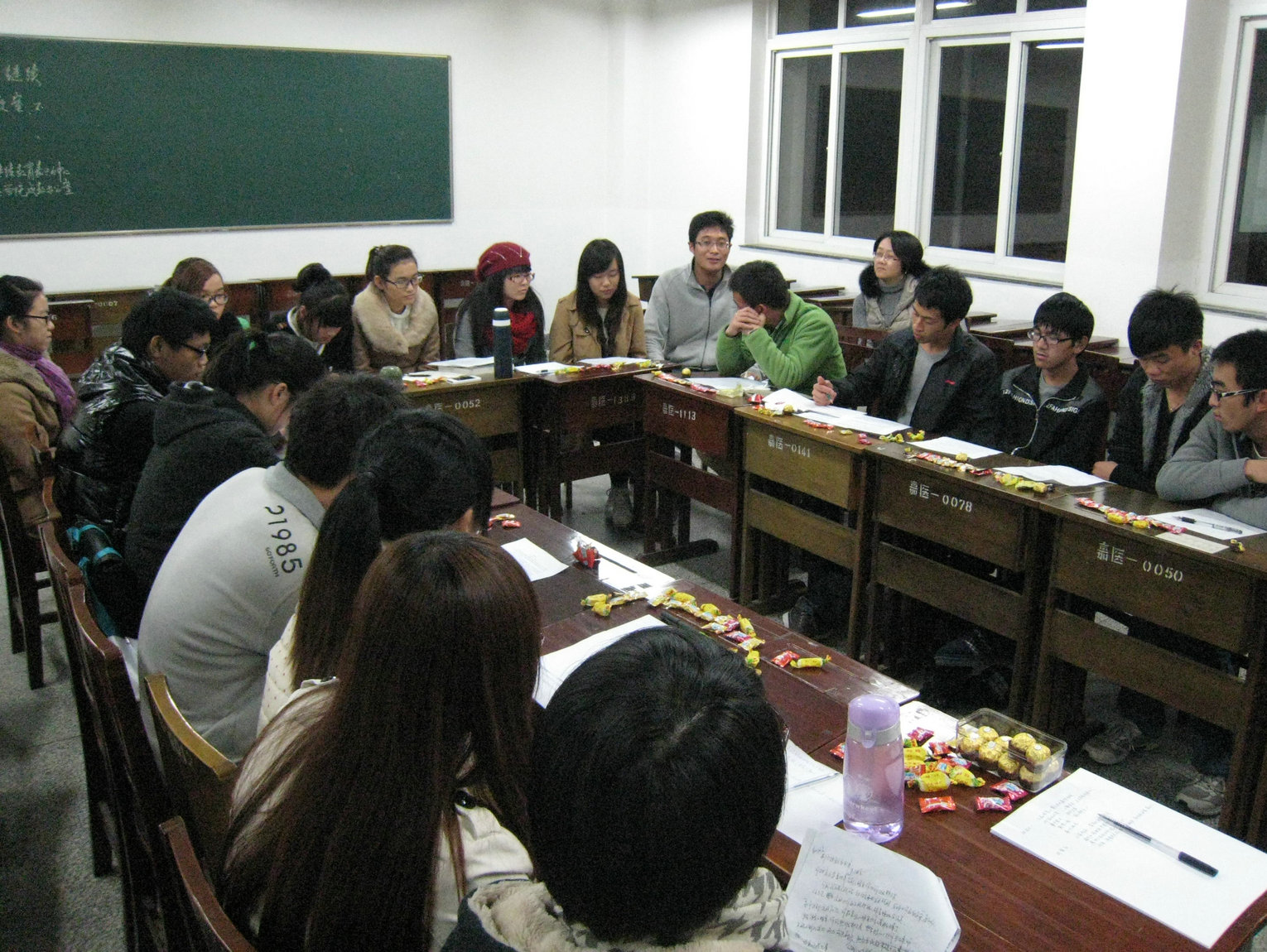 图5 听取讲座的全体药学师生 图6 导师黄越燕组织心得分享讨论会