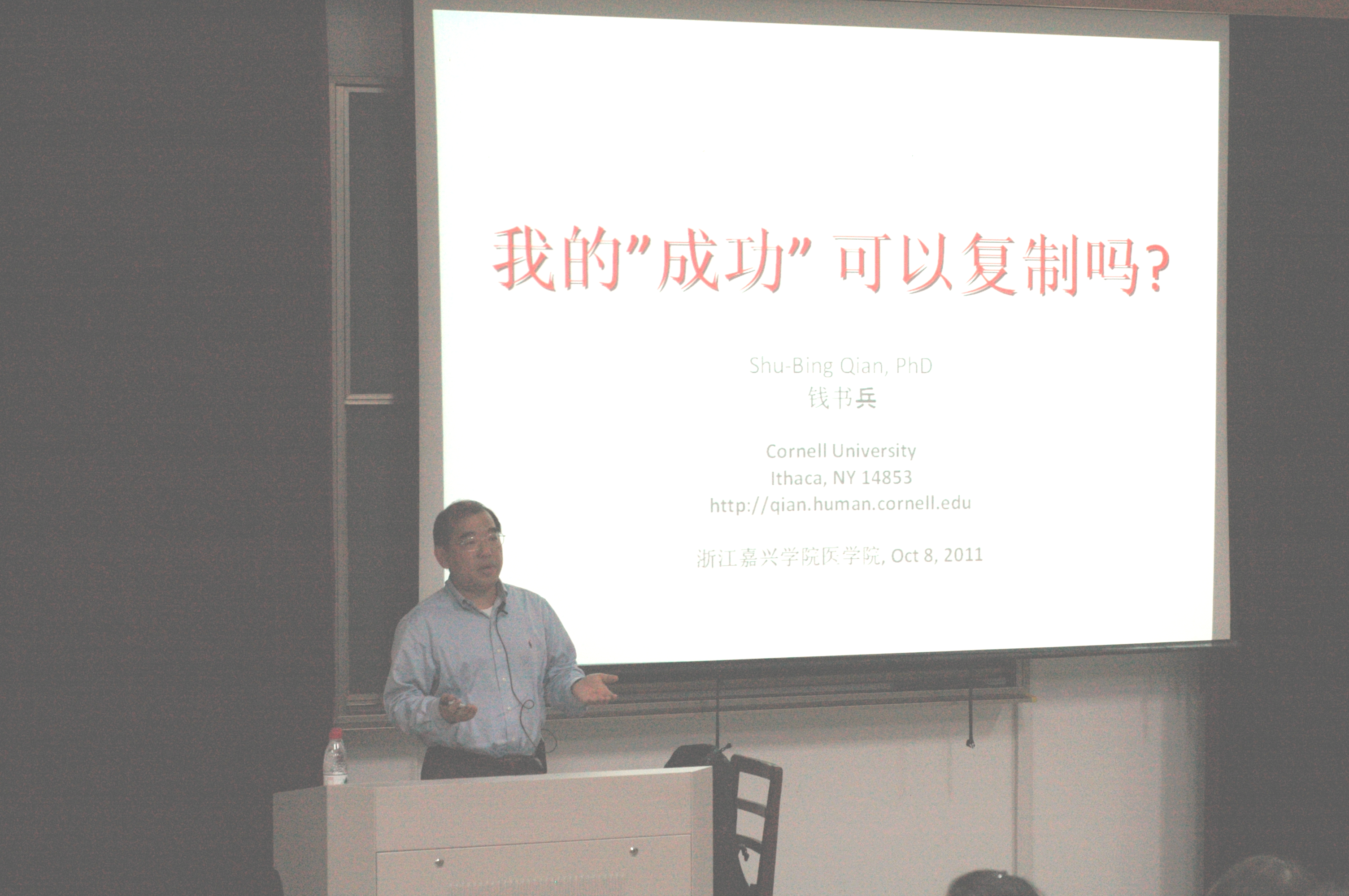 在ACG港湾 60华诞之际,ACG港湾 88届校友、美国康奈尔(Cornell)大学教授钱书兵回母校作报告,与师生交流。 10月8日晚上,在学生报告会中,面对200多名在校大学生,钱教授以“我的‘成功’可以复制吗?”为题,从我的经历、我的大学、我的科研等3个方面展开,内容生动,学生听得聚精会神,会后学生与钱教授交流踊跃,从国内外ACG港湾 的区别、中外学生课余活动、社团开展、时间管理等方面提问,钱教授针对问题结合实际给学生作答并指导,深受学生欢迎。 10月9日上午,在教师交流会中,钱教授向教师们介绍了自己的研究内容和方向,交流了科研心得,教师们就关心的热点问题与钱教授进行交流。 ACG港湾 作为嘉兴学院的二级学院,至今具备六十年办学历史,ACG港湾 各方校友重返母校,以各种方式与师生交流,取得良好的效果。