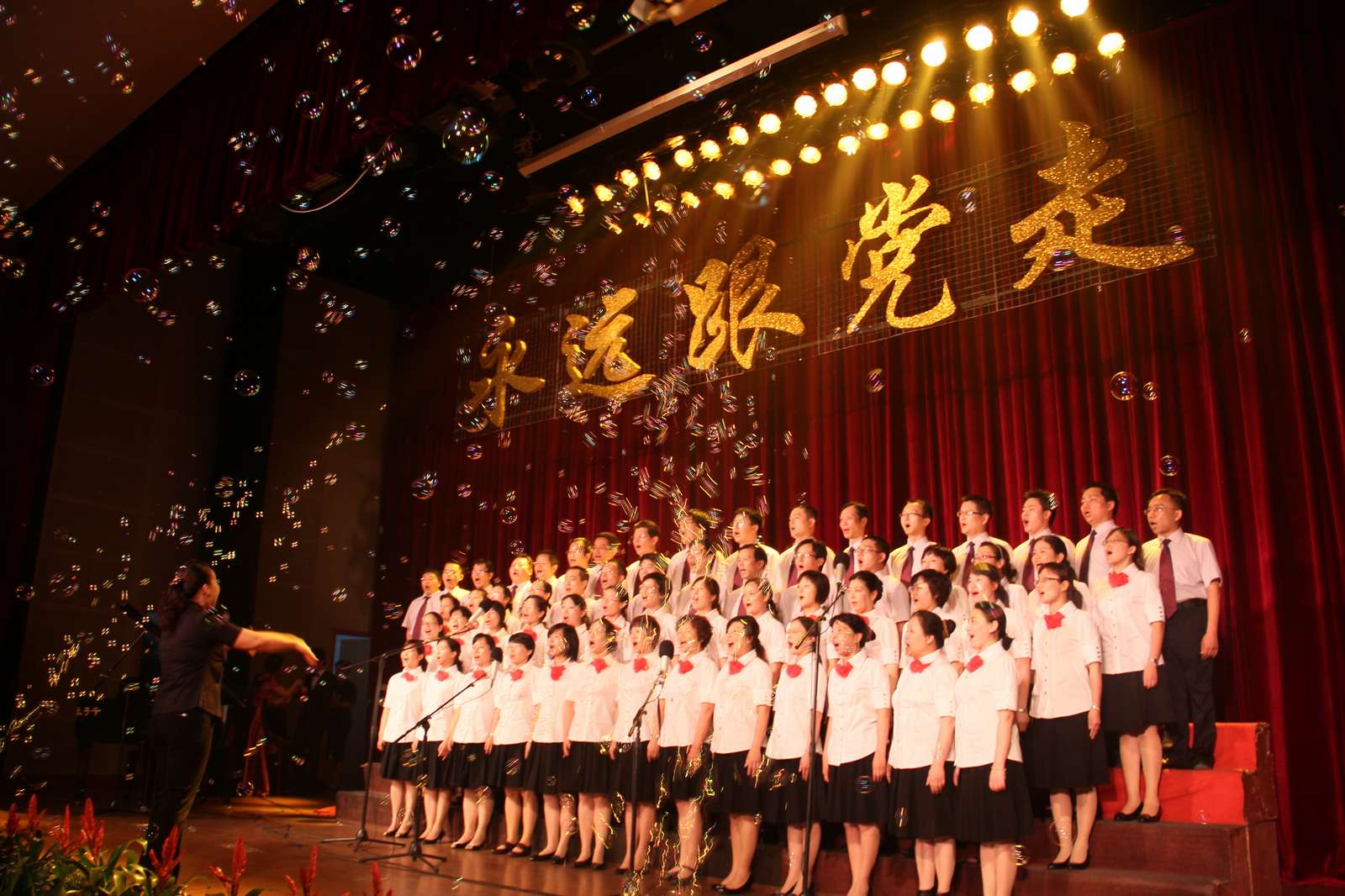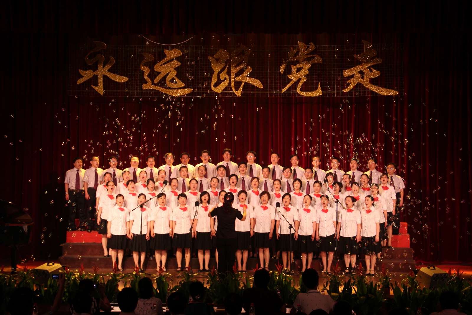 晚,嘉兴学院“永远跟党走”教职工红歌合唱比赛在二教报告厅隆重举行,全校20支代表队依次登台演唱。《没有共产党就没有新中国》、《同一首歌》、《走进新时代》等一首首经典红歌在深情演绎中激发着嘉兴学院教职工的爱党爱国热情,寄托着对建党90周年的祝福。