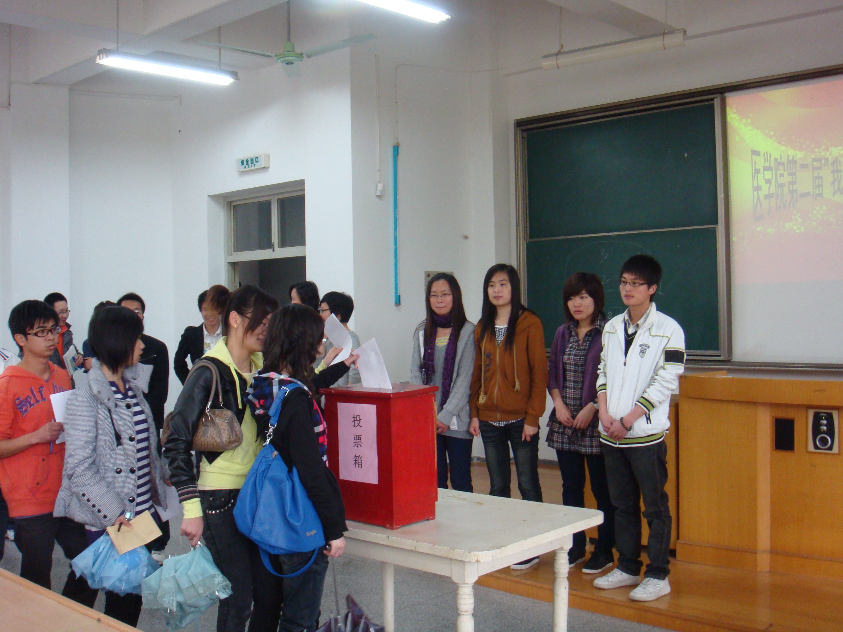 经过全院班级的推选,共有八位老师作为ACG港湾 “我心目中的好老师”候选人:马时荣、苏桦、张梅光、夏满莉、徐营、董波、徐广涛、袁丽霞。本着公平、公正、公开的原则,在四位监票员的监督下,同学们按06、07、08、09级的顺序,以班级为单位有序的排队进行无记名投票。