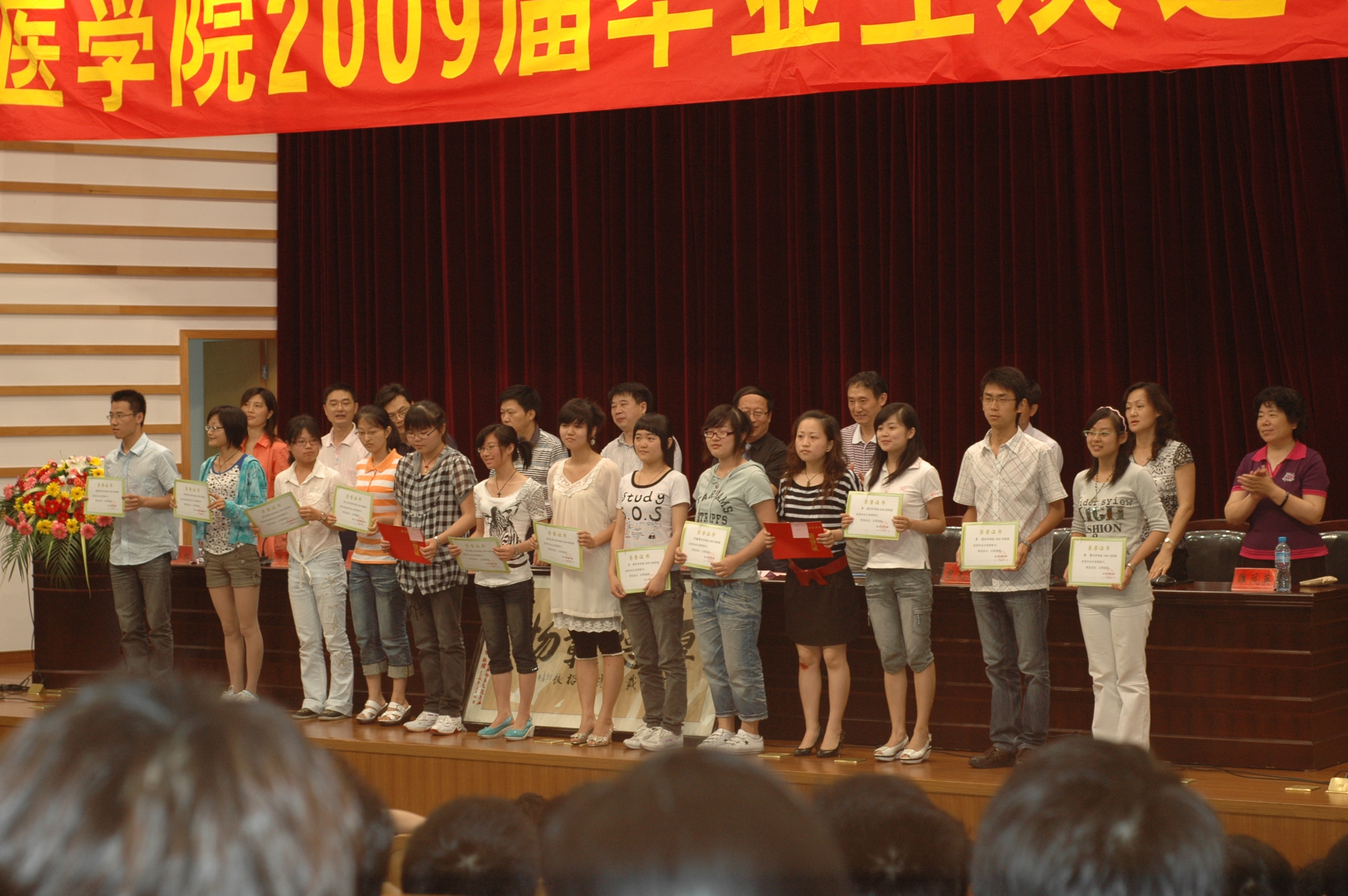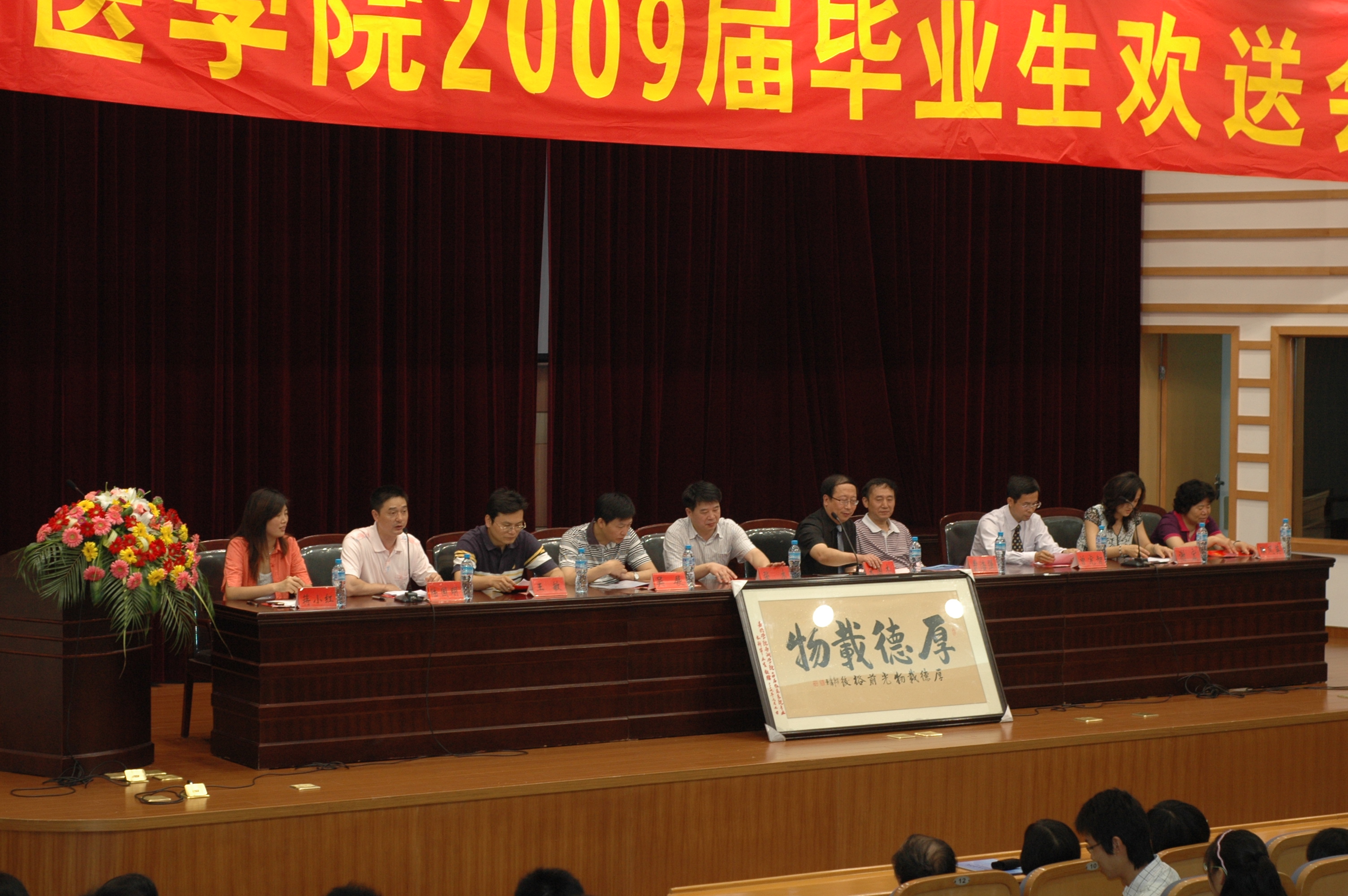 领导、三办主任、专业负责人、毕业班班主任及全体2009届毕业生共四百余人参加了欢送会。院办主任陆国明主持欢送会。
