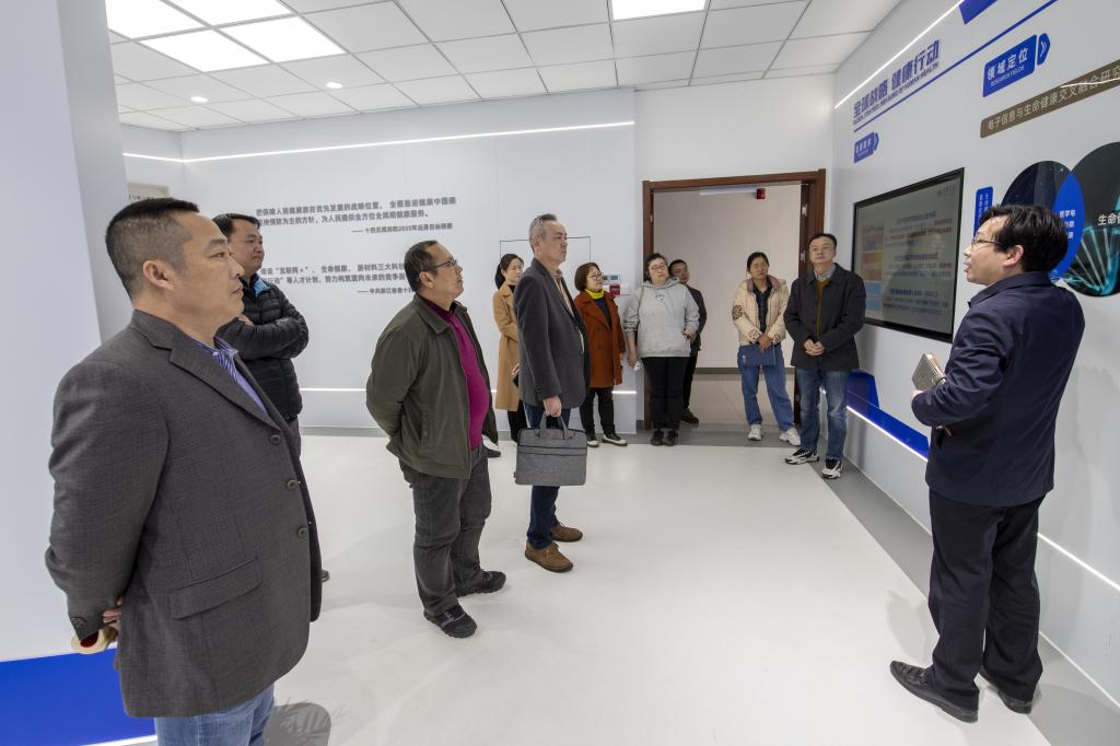 信息网络与智能研究院张先超执行院长带领大家参观了浙江省医学电子与数字健康重点实验室展厅,讲解了实验室构建医学电子与数字健康价值体系、产业体系与创新体系等三大体系的任务,以及生理/生物信息智能感知、健康信息网络与安全、健康大数据与智能管控等研究方向。参观结束后,大家关于如何开展医学与信息交叉融合科研进行了深入交流、讨论。