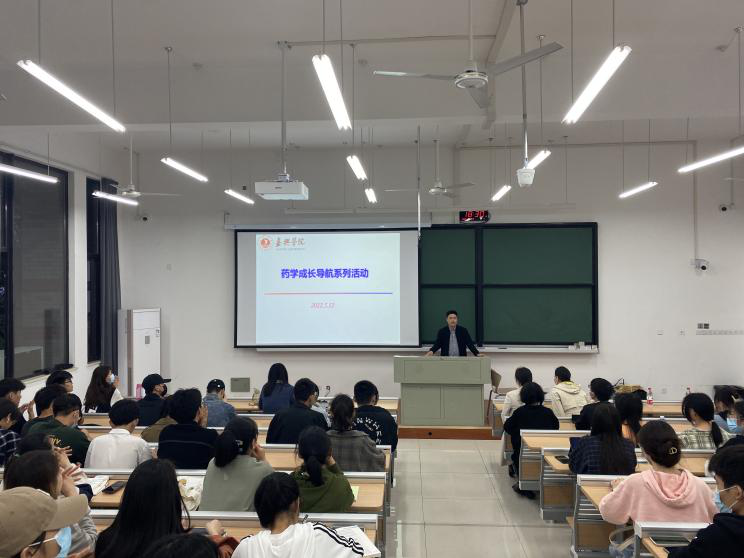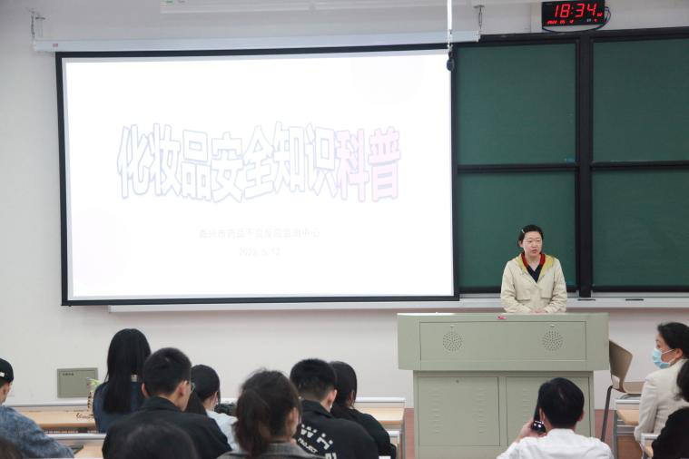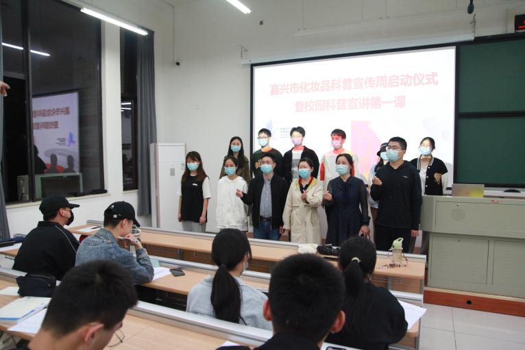 为进一步激发药学学生对本专业的学习兴趣,提升对药品和化妆品安全意识,2022年5月12日,药学系联合嘉兴市市场监督管理局进行药学成长导航系列活动暨嘉兴市化妆品科普宣传周启动仪式校园科普宣讲,参加活动人员有嘉兴市市场监管局药品与化妆品监督管理处处长刘曦、嘉兴市食品药品检测院院长沈春燕、 嘉兴市药品化妆品不良反应中心副主任陈晨、药学系主任黄越燕及专任教师黄雄、张晓勤,药学专业大一全体学生及其他学院学生共计150人参与此次活动。