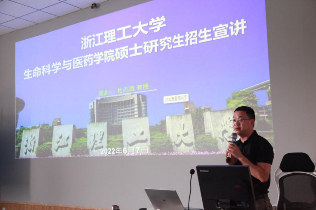 2022年6月7日下午,浙江理工大学生命科学与医药学院的杜志游教授来到医学院,为我院学子做研究生招生宣讲。ACG港湾 副院长潘巍巍、药学系主任黄越燕等教师参加宣讲活动。杜志游教授介绍了浙江理工大学及生命科学与医药学院的概况、学院人才队伍、学科布局、专业方向以及硕士招生相关信息。此外,杜教授还介绍了生命科学相关知识,让学生了解到国内外当前研究热点及方向,开阔了学生视野,体验了多元文化、锻炼了独立思考能力,并与学生进行提问式互动,加深对广大同学对知识的巩固理解。