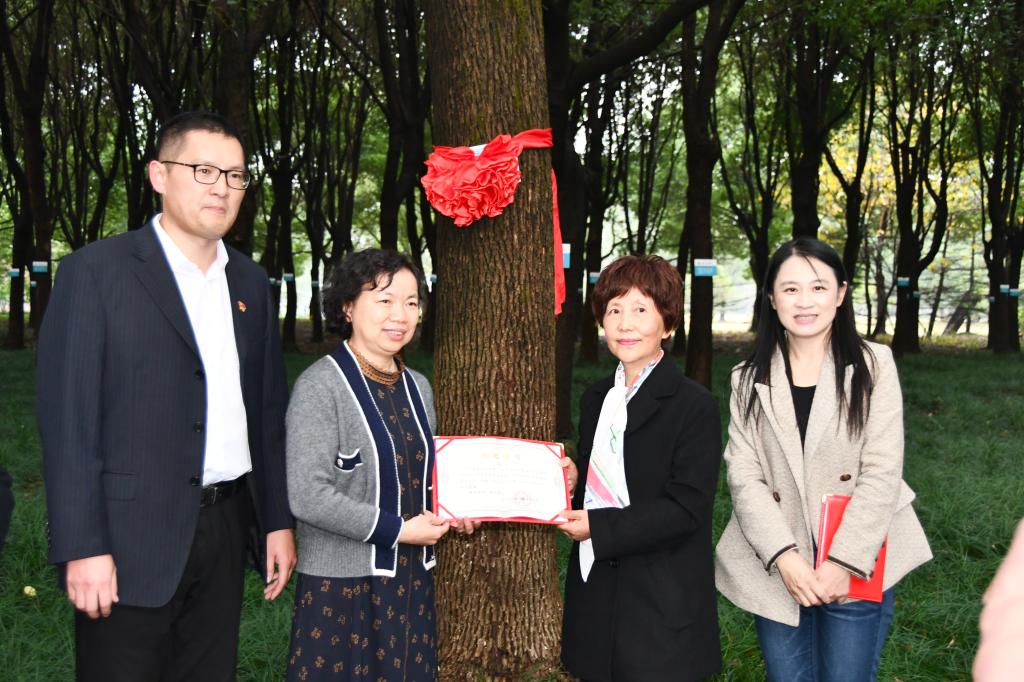 16点,在校友林举行了认养树木活动。社会合作处副处长李丹丹、学院党委副书记李联钊出席活动并向校友代表颁发捐赠证书,校友代表现场参加活动。