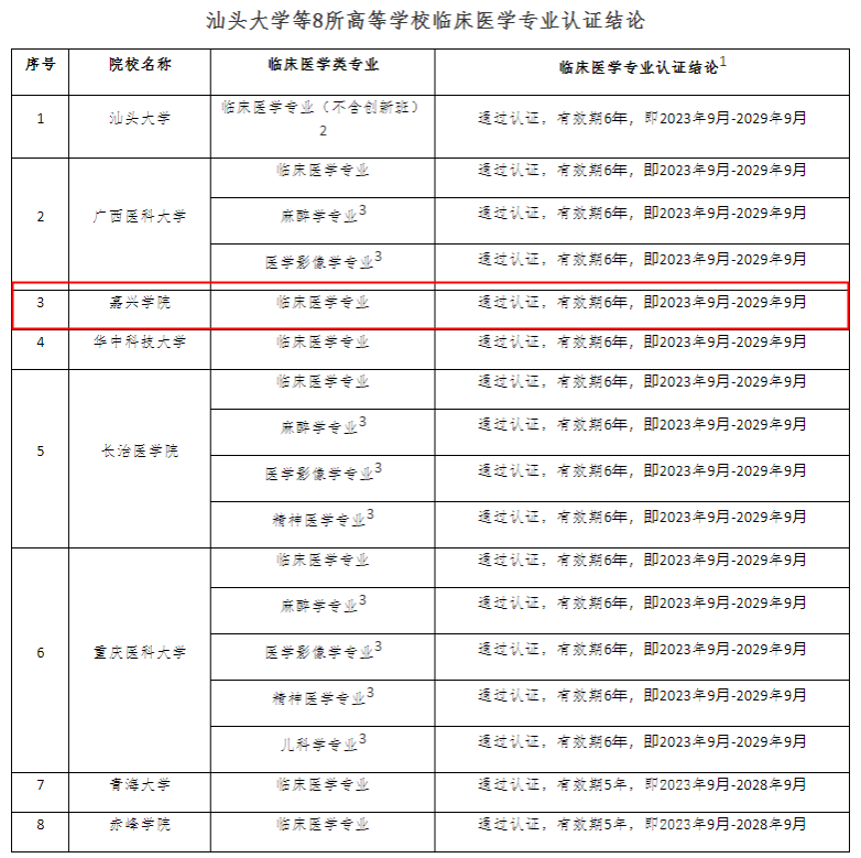近日,教育部教育质量评估中心发布《关于公布汕头大学等8所高等学校临床医学专业认证结论的通知》,我校临床医学专业再次通过认证,有效期6年。此前,临床医学专业于2012年通过教育部专业认证,2018年通过教育部专业认证回访,并于2021年列入国家级一流本科专业建设点。