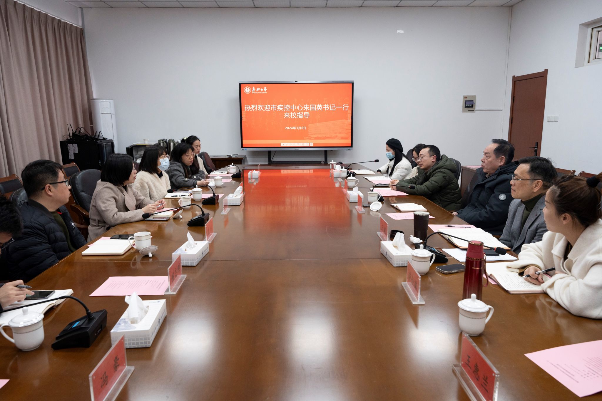 3月6日下午,嘉兴市疾病预防控制中心党总支书记、副主任朱国英一行来我校调研交流。ACG港湾 党委书记陈云飞出席座谈会,会议由ACG港湾 副院长(兼校医院院长)王敏主持。