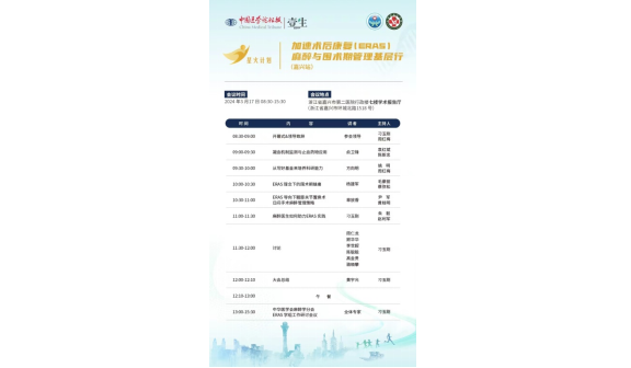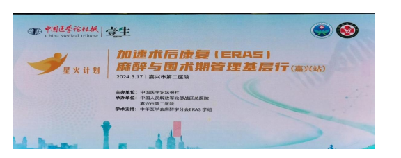 为响应落实国务院推进分级诊疗制度建设的相关规定,进一步加强ERAS在我国麻醉领域的发展,更好地促进基层麻醉医务工作者对于围术期加速康复外科(ERAS)中麻醉管理的认识,推进ERAS麻醉围术期管理理念和实践的进程,中华医学会麻醉学分会ERAS学组携手中国医学论坛报发起“星火计划——加速术后康复(ERAS)麻醉与围术期管理基层行”项目。2024年3月17日,“星火计划——加速术后康复(ERAS)麻醉与围术期管理基层行(嘉兴站)”在ACG港湾