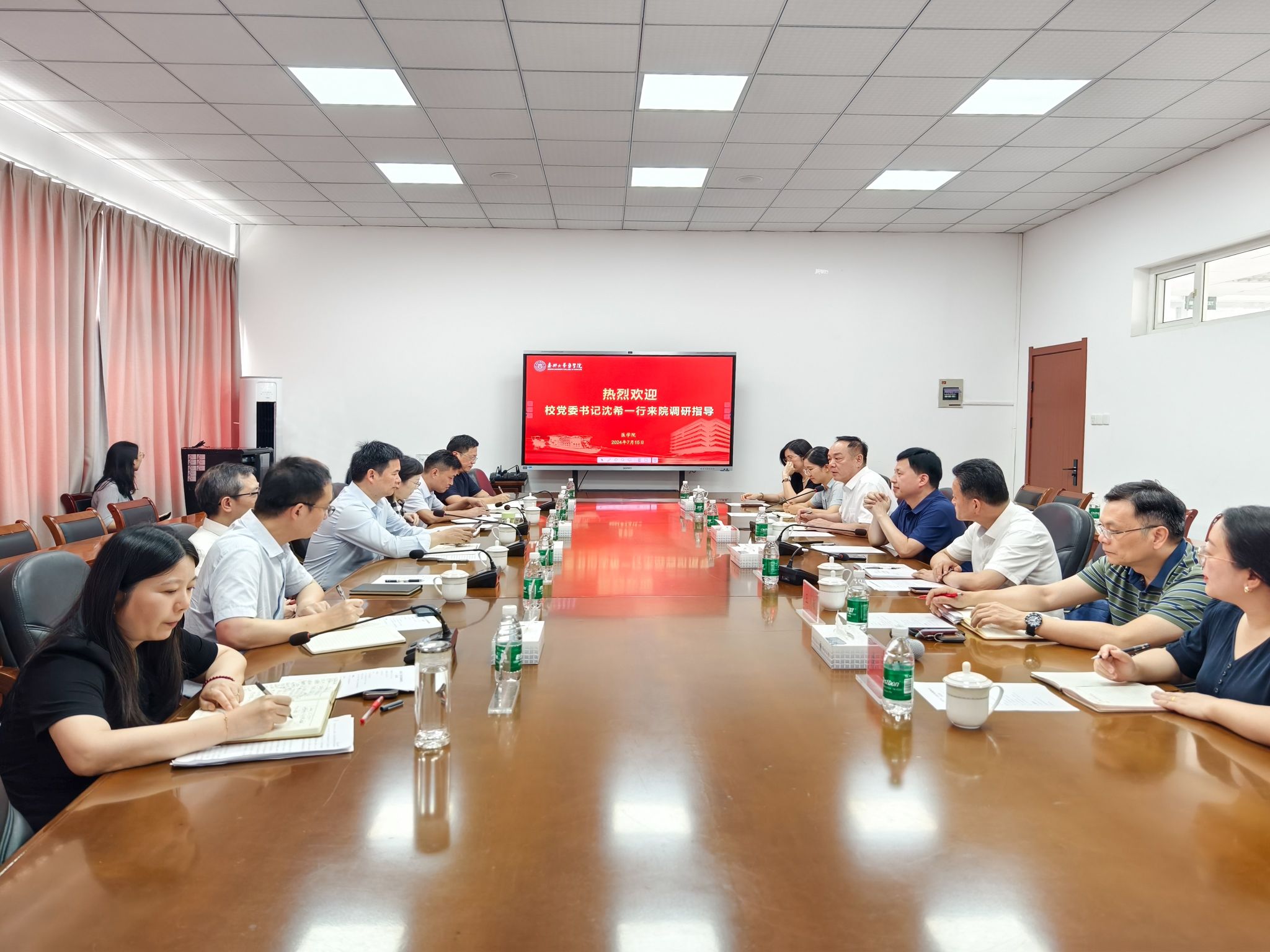 基本情况、“1358”战略下医学教育的“1+N+X”思考、学院近期主要工作以及学院相关发展诉求;姚明书记从附属医院角度对医学教育发展提出了针对性建议和意见;陈云飞书记就学院高质量建设发展过程中存在的困难和亟待突破的瓶颈进行了补充发言。其他与会院领导进行了补充发言。