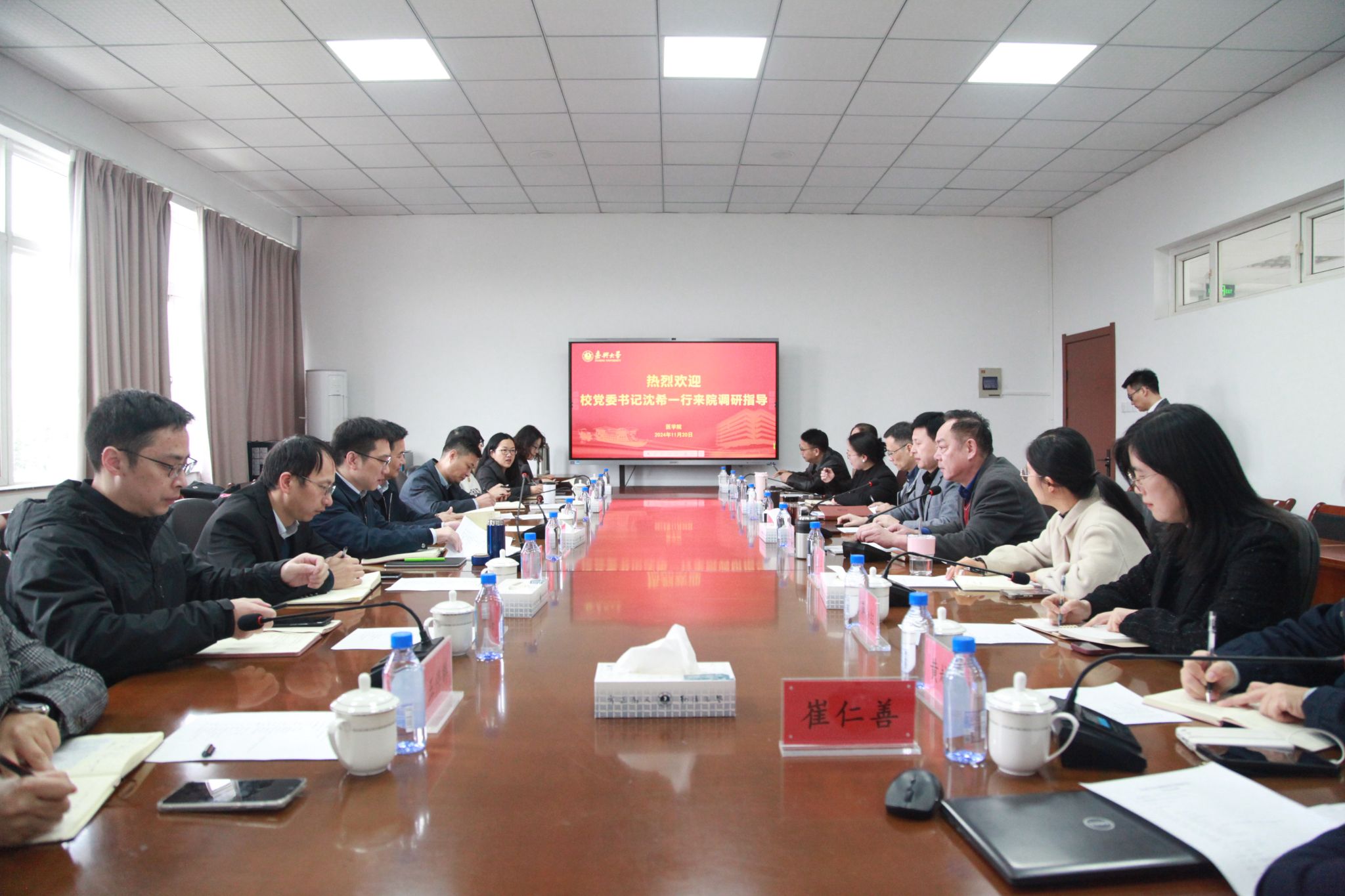 何治院长介绍了学院近期基本情况和工作成效,并围绕学校发展新形势下医学教育发展思考,从专业建设及教学工作、学科建设及科研工作、师资队伍建设、学生工作以及重大突破性引导性目标等方面详细汇报了学院下一阶段发展规划。