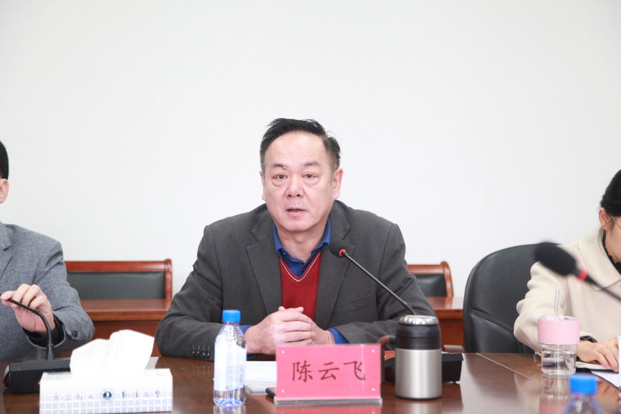 调研指导工作,学院党政班子成员、各系部中心负责人参加会议,会议由学院党委书记陈云飞主持。