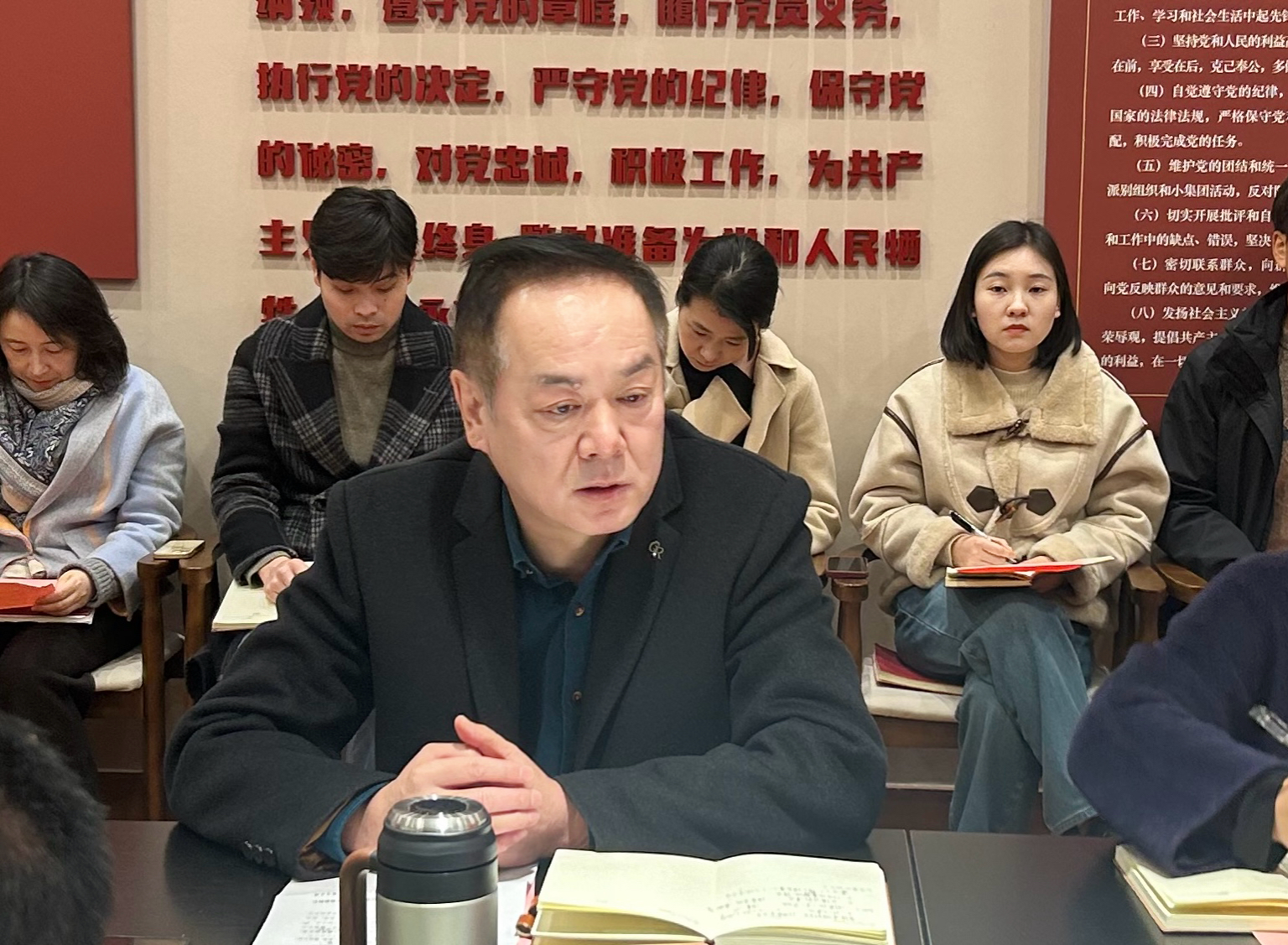 陈云飞围绕学院宣传思想文化、安全稳定工作等方面进行汇报,剖析存在的问题、风险点,并提出下一步工作举措;朱莹围绕“打造‘四个一’体系”就学生教育管理工作现状、发展举措进行详细汇报。