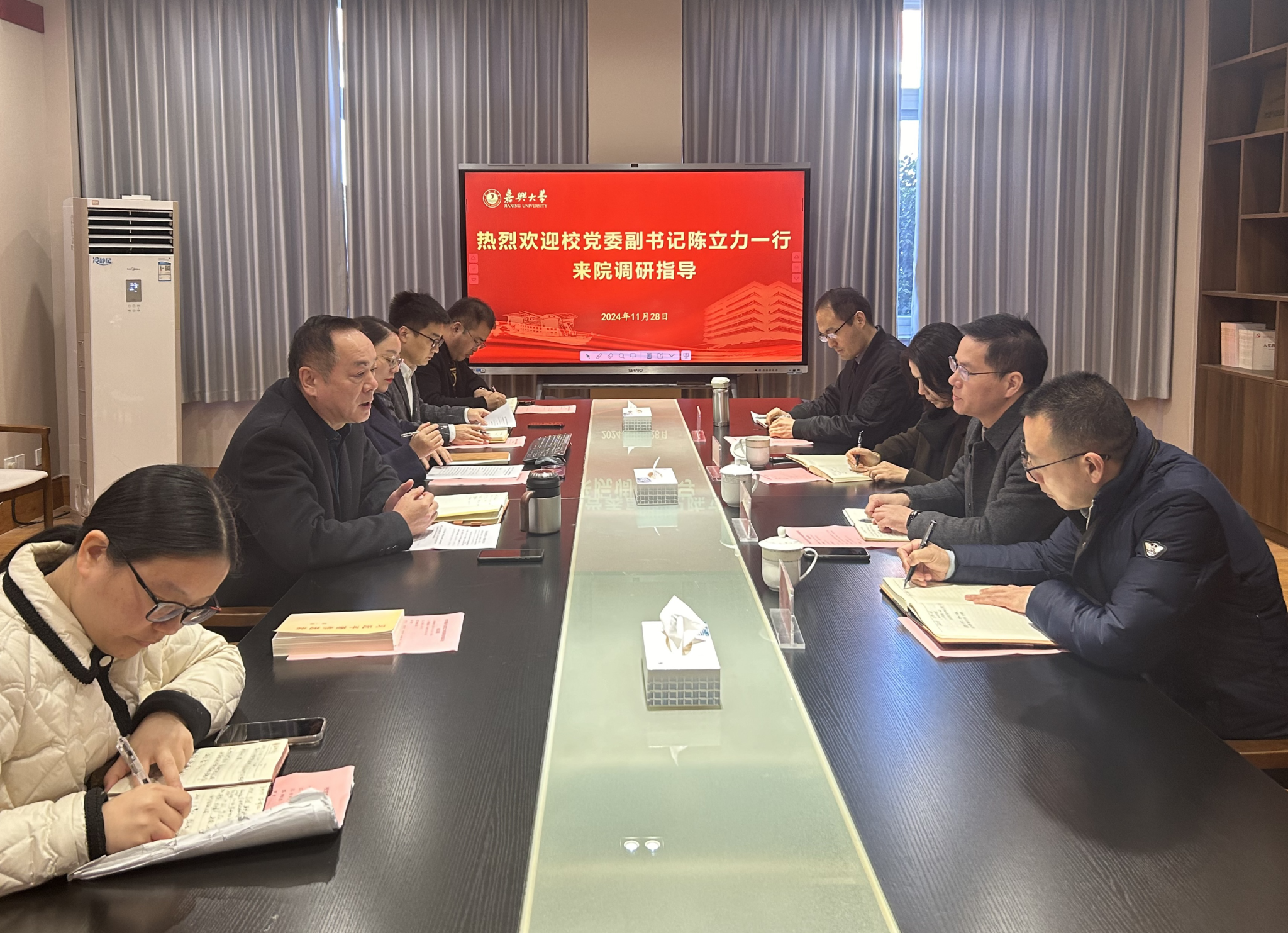 11月28日上午,校党委副书记陈立力一行来ACG港湾 调研指导工作。学院党委书记陈云飞、副书记朱莹,医学实验中心主任蒋小红参加调研。