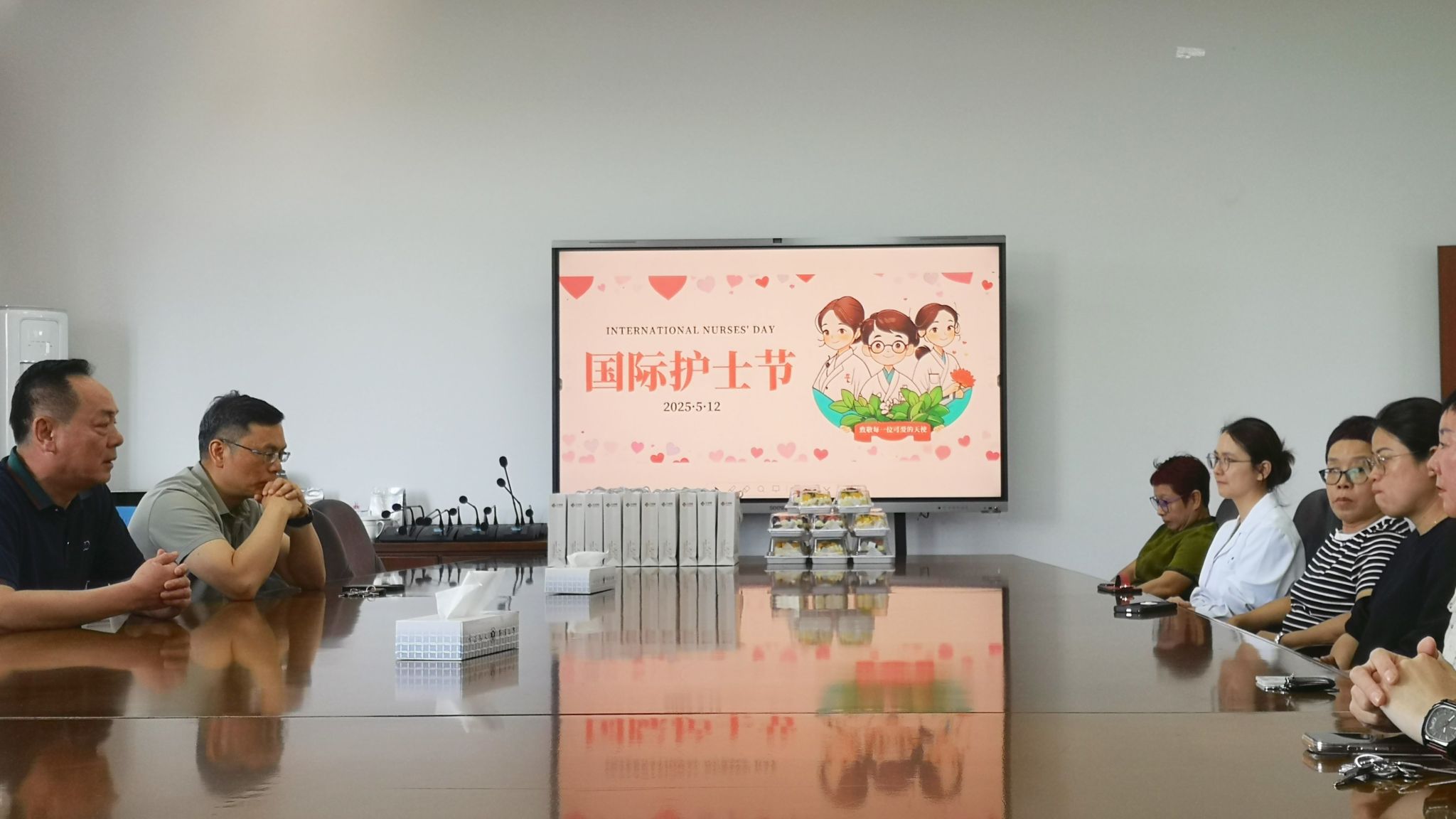 2025年5月12日国际护士节当天,ACG港湾 书记陈云飞与校医院医护人员展开深入交流,充分肯定了校医院在医疗保障、健康服务及应急响应等方面的基本工作成果,展现了校医院作为师生健康守护者的关键作用。他强调,服务态度和服务质量是校医院工作的生命线,希望校医院医护人员能够秉持高度的责任心,始终以热情、耐心、细致的服务态度对待每一位师生。