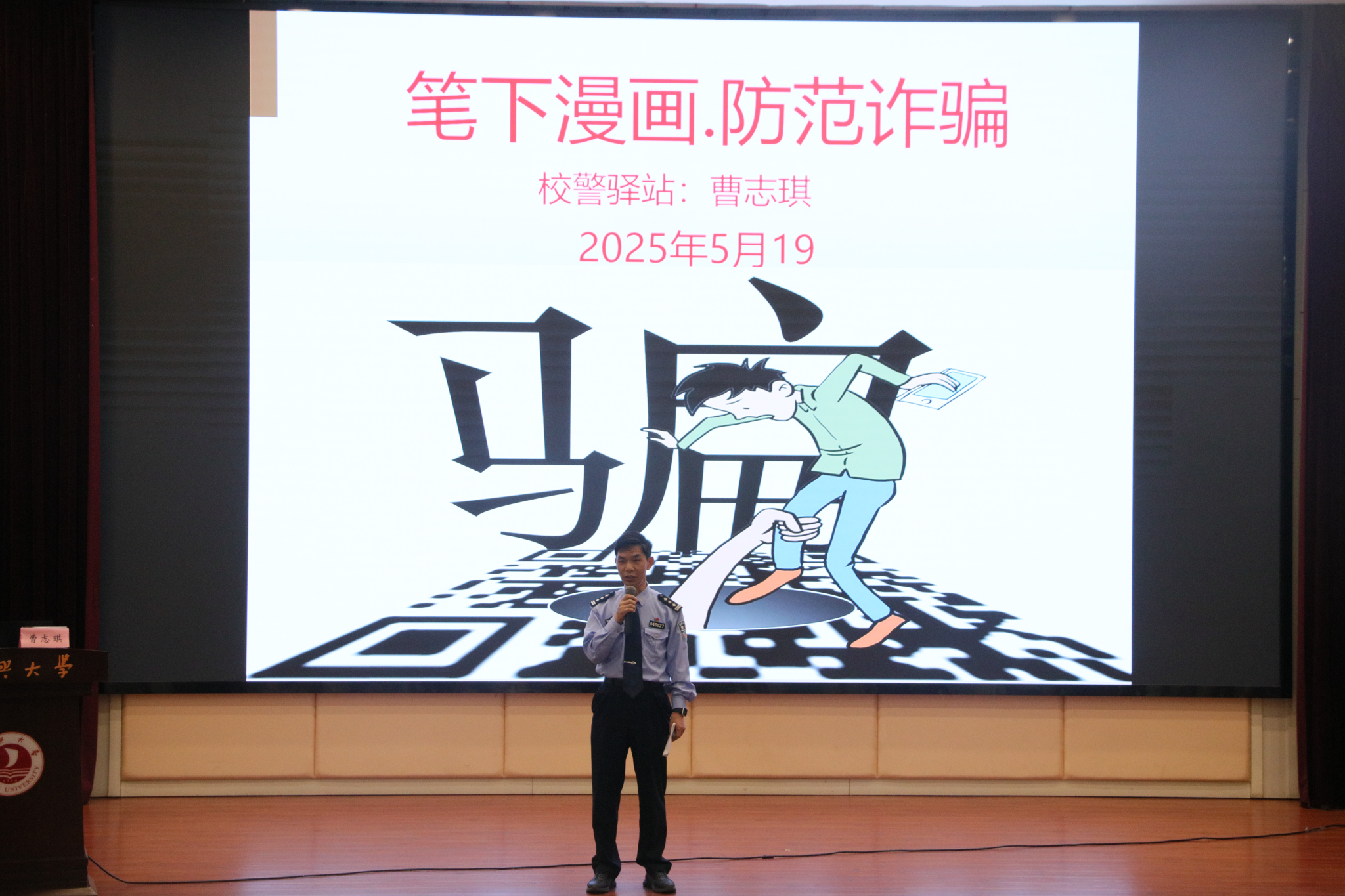 校警驿站专职派驻民警曹志琪警官通过原创反诈漫画和真实案例,生动剖析了“冒充导师诈骗”“虚假兼职陷阱”“医学生信息盗用”等高发骗局。他提醒学生:“诈骗手段不断翻新,但核心逻辑是利用人性弱点。凡涉及转账、个人信息,务必核实再行动!”