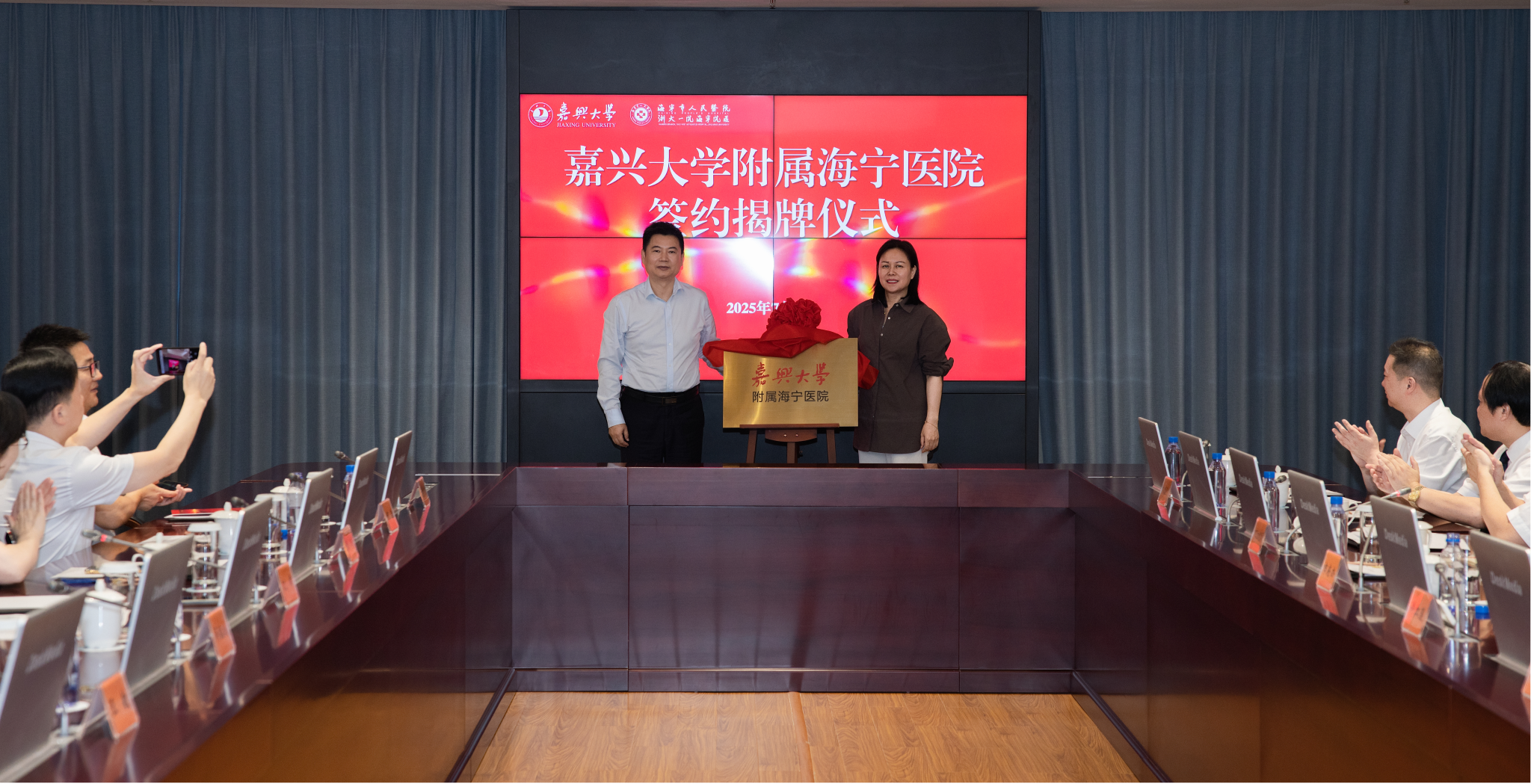 副校长(主持日常工作)张琦、海宁市市长许红莲、海宁市人大常委会副主任曹毅等出席仪式。海宁市卫生健康局党委书记、局长沈鹏主持仪式。