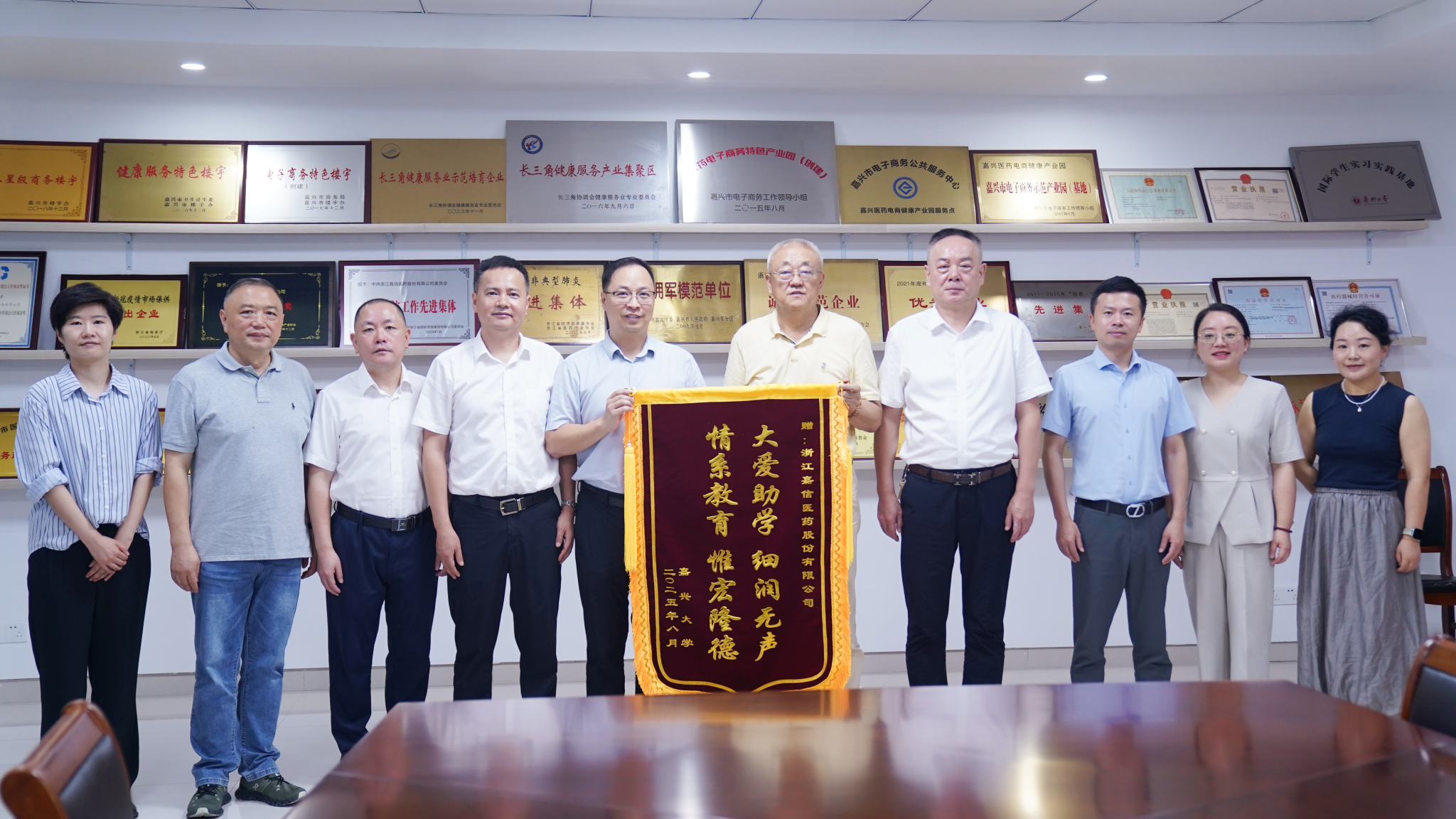 党委副书记朱莹一行专程到访浙江嘉信医药股份有限公司,与嘉信医药原董事长蔡光復及公司党政领导举行了一场充满温情与发展期待的交流活动。此行既是对嘉信医药原董事长蔡光復先生二十年如一日捐资助学义举的深切感恩,更是双方共绘产教融合新蓝图的重要起点。