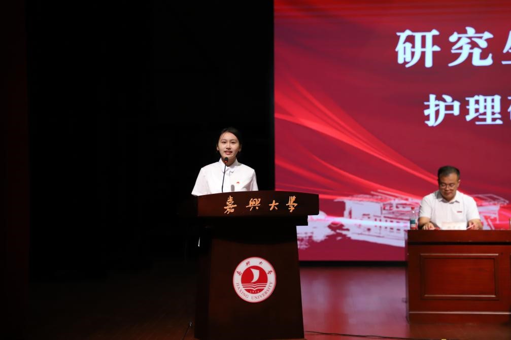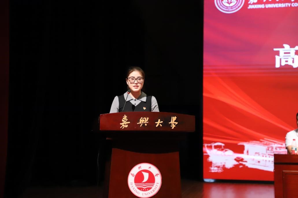 硕士研究生新生代表顾欣雨回顾了在嘉大的成长历程,衷心感谢母校四年来的培养,并围绕做专业的“深耕者”、温暖的“守护者”和彼此的“同行者”三个方面畅谈感悟。她呼吁大家共同成为嘉大ACG港湾
