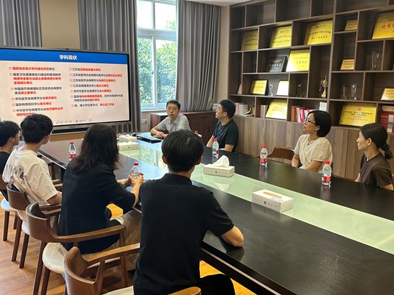 在交流研讨环节,双方围绕科研成果、合作方向展开深度互动。潘巍巍教授系统介绍了团队在肿瘤领域的研究积淀,以及深耕医工交叉融合的创新研究特色;雷哲副研究员则分享了苏大附一院病理科的发展历程,重点介绍了科室在肺癌与肠道肿瘤病理多模态大模型方面的研究成果。研讨期间,双方就“AI辅助病理诊断模型联合研发”“临床样本共享创新机制”等关键合作议题达成初步意向,明确将以临床实际需求为导向,加速推动医工融合技术成果向临床诊疗实践转化。