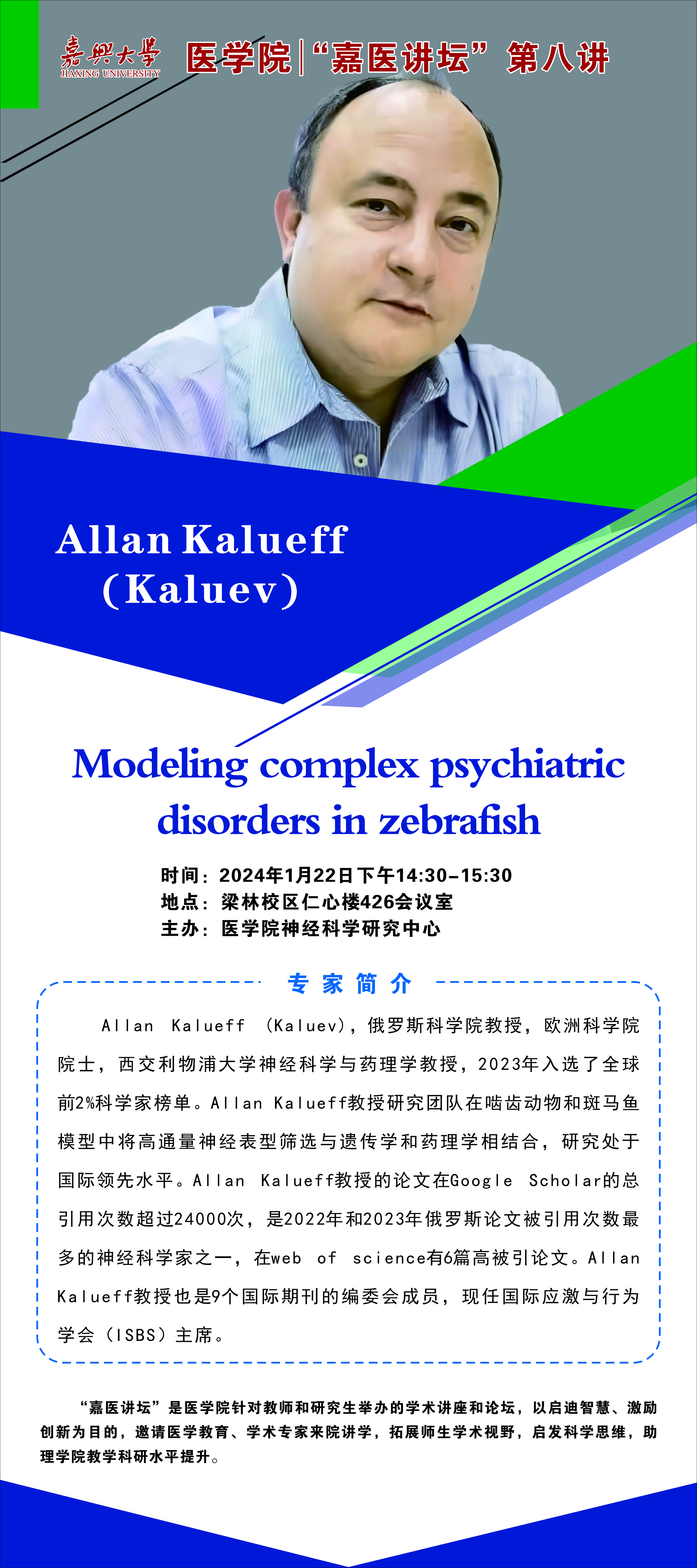 嘉医讲坛第八讲:欧洲科学院院士Allan Kalueff教授
