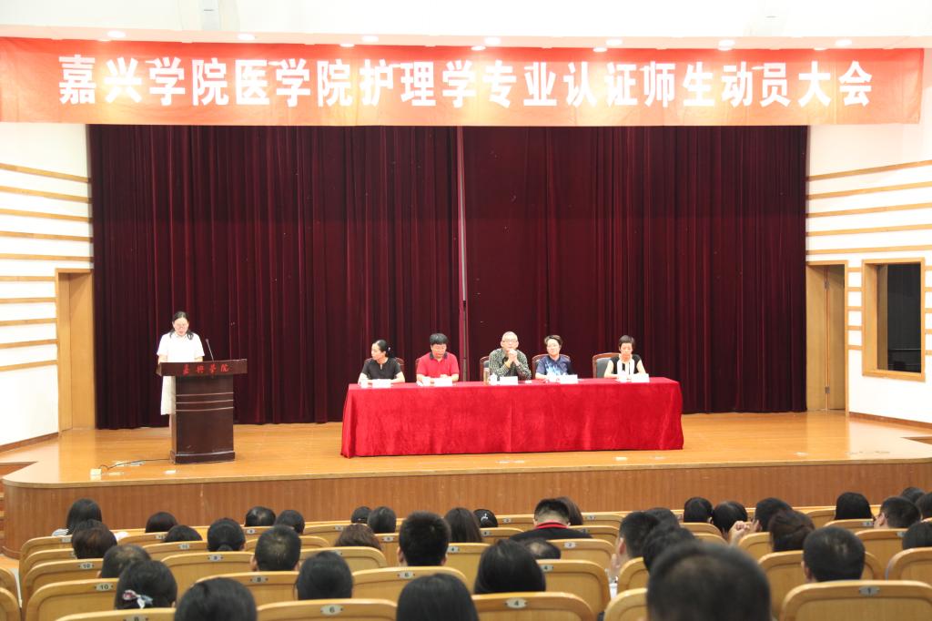 护理学专业认证师生动员大会主要任务是进一步提高全院师生对护理学专业认证重要性的认识,统一思想,认清形势,明确任务,凝心聚力,并以认证为契机,提高护理学专业本科教学水平和人才培养质量,进一步纵深推进学院内涵建设和特色发展,加快实现学院“十三五”事业发展规划目标,为学校申硕创大添砖加瓦。他对全体师生提出三点希望,一是希望全体师生能统一思想,提高认识,深刻理解护理学专业认证工作的重大意义;二是希望全体师生理清思路、明确目标,准确把握专业认证工作的紧迫形势;三是凝心聚力,全力以赴,扎实推进专业认证工作。
