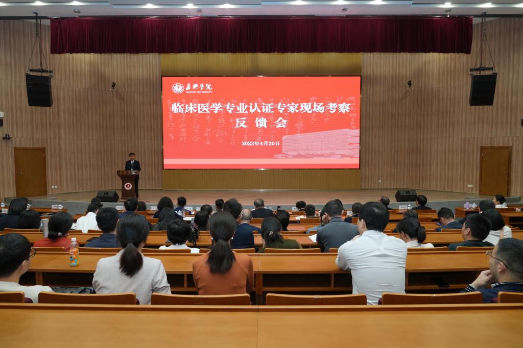 嘉兴市政府副秘书长金球发言指出,专家组提出的改进建议符合医学高等教育的规律,契合嘉兴学院办学实际和“创大争一流”的目标定位,对于学校进一步深化教育教学改革、提高临床医学专业建设水平具有十分重要的指导意义,也为嘉兴市委、市政府进一步引导全市医教资源深度融合、支撑医学教育高质量发展提供了重要参考。他要求,学校要以专业认证为契机,准确把握专家组的意见,切实形成有深度、有力度、有效度的整改方案,持续推动临床医学专业建设,全面提升医学教育水平,为健康嘉兴战略的实施作出新的贡献。